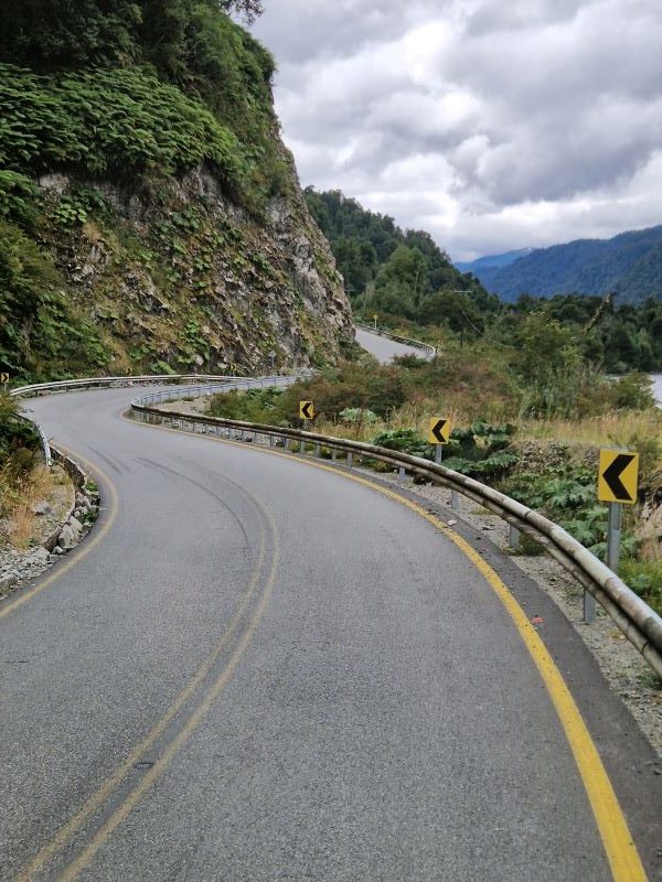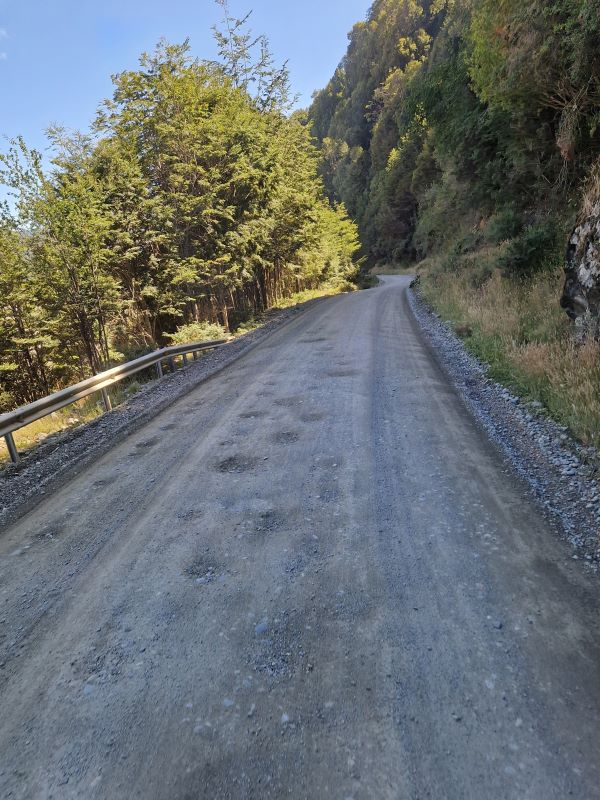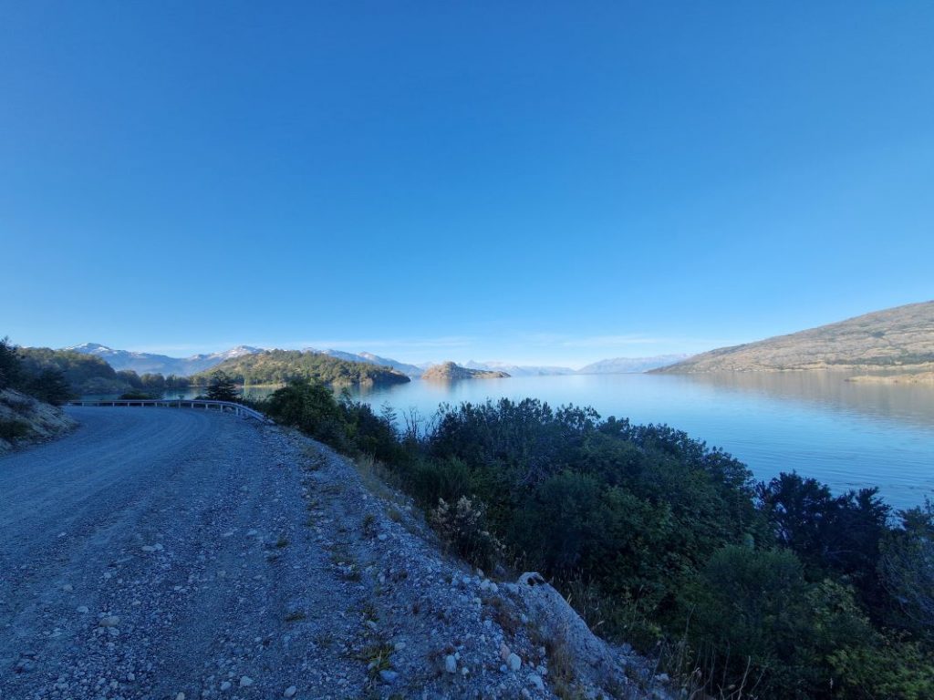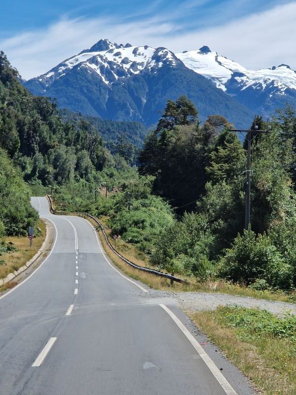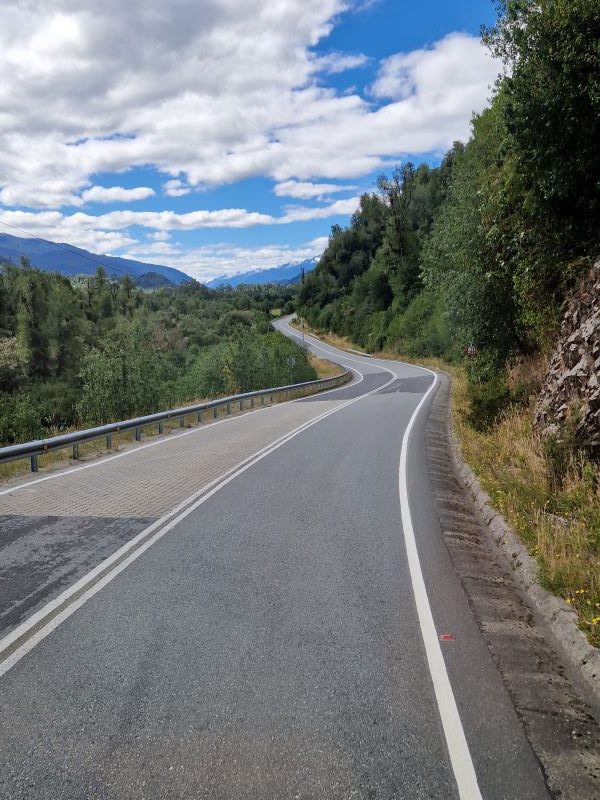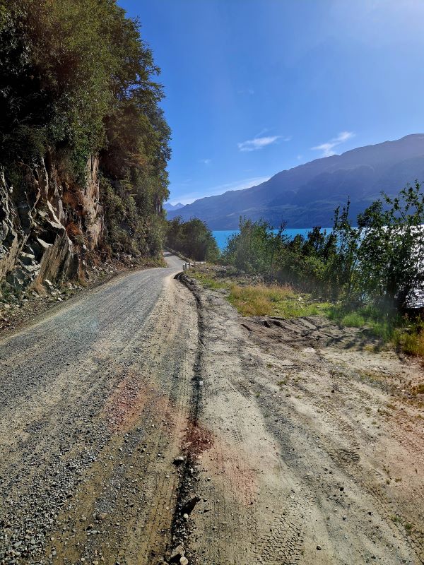 Anfangs sind wir guter Dinge, dass die Schotterpisten auf der viel genutzten Ruta7 in einem gepflegten, sprich gewarteten Zustand sind. Immerhin nutzen neben Einheimischen und Touristen v.a. das Militär mit ihren schweren Geräten die Nord-Süd-Achse. Doch schon die ersten 50km nach Río Tranquilo zeigen die Realität. Eng und kurvig sind zwei Adjektive, die es am besten treffen. Straßenzustand: siehe oben. Die Aussicht ist jedoch grandios! Die Vegetation verändert sich entlang der Strecke. Anfangs fahren wir an malerischen Seen und Flüssen entlang, dann kommen wir durchs Voralpenland, schließlich in den nordpatagonischen Regenwald. Eine Fahrt durch eine Traumkulisse, wie im Bilderbuch.