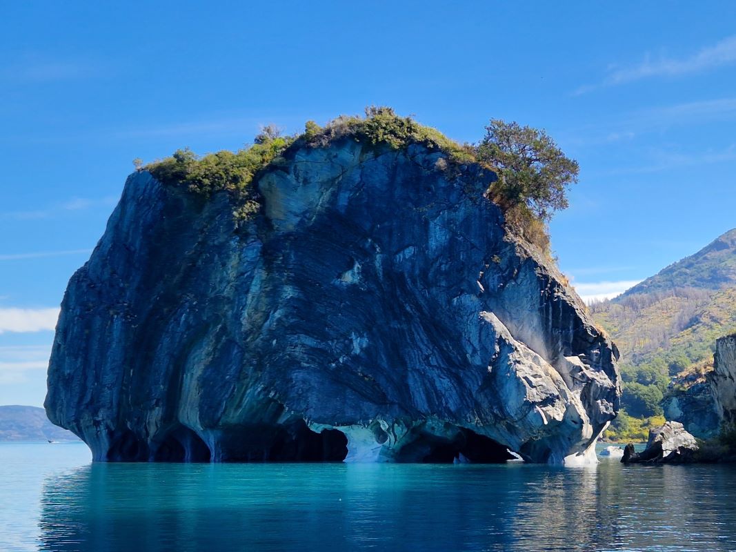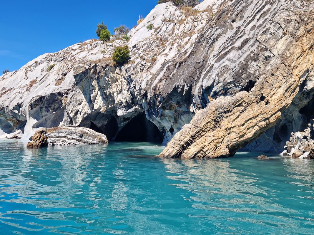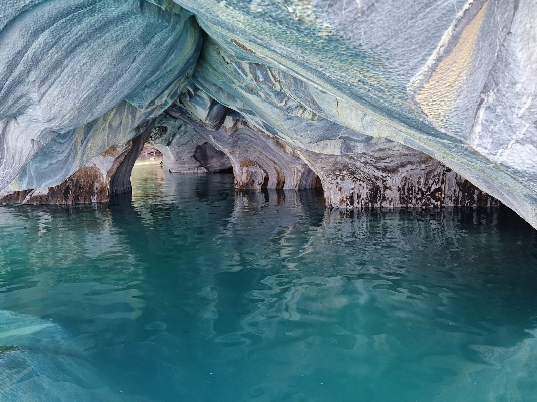 Nach unserer Ankunft in Río Tranquilo machen wir nachmittags eine dreistündige Bootstour zu den Mamorkathedralen (capillas de marmol). Es ist sonnig und absolut windstill – eine kleine Seltenheit hier.