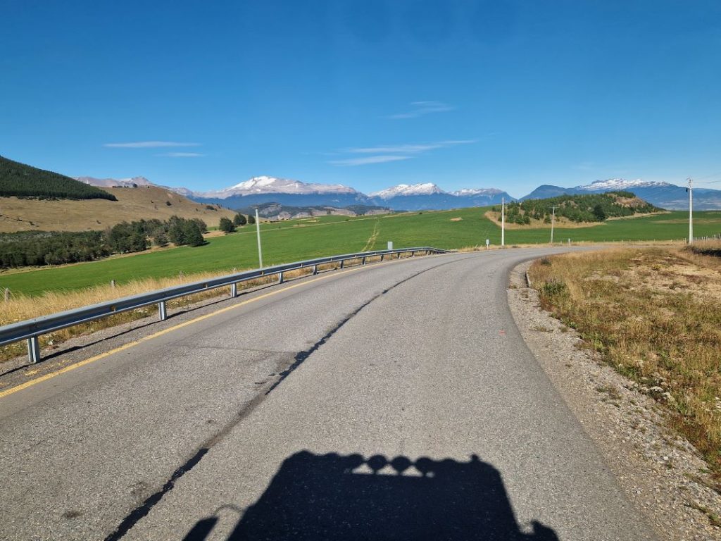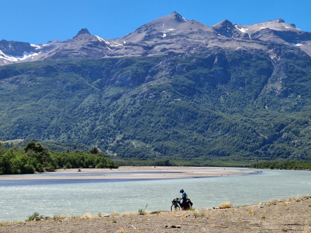 Geerdet und unserer eigenen Privilegien bewusst begrüßt uns eine Traumkulisse auf der sanften Fahrt durch faszinierende Flußtäler nach Chaitén. Die Vegetation sprüht in allen Grüntönen. Links und rechts um uns herum erheben sich die Berge, manche noch schneebedeckt. Es blüht, summt und plätschert, wo wir nur hinsehen. Mit einer gemütlichen Leichtigkeit cruisen wir der Küste entgegen. Viel zu schnell erreichen wir dann am Nachmittag Chaitén und den Pazifik. Es hätte gern noch so weitergehen können.