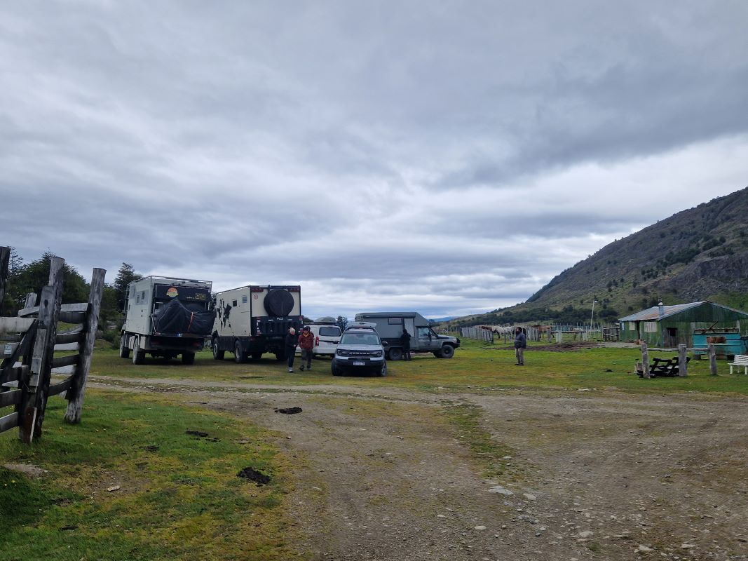 Am Morgen des 29.12. finden wir uns mit unseren Fahrzeugen am verabredeten Treffpunkt in der Nähe des Hafens ein und werden von zwei Mitarbeitern des Reisebüros auf einen Bauernhof etwas außerhalb von Ushuaia eskortiert (die 3,5 LKWs sind dann doch etwas groß für einen Parkplatz in der Stadt). Dort können wir unsere Autos abgesichert für die nächsten knapp 2 Wochen unterstellen. Die freilaufenden Hühner und Lamas werden schon gut aufpassen, vielleicht finden wir ja bei der Rückkehr frisch gelegte Eier unter der Motorhaube…
