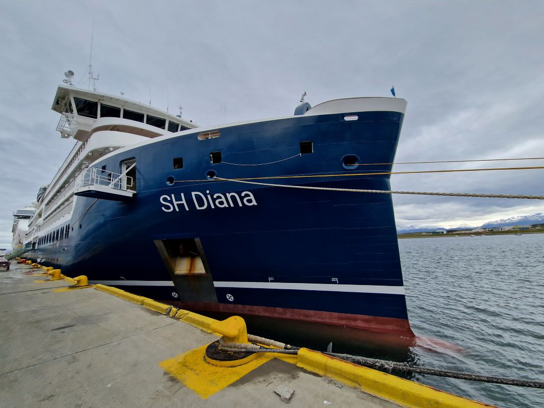 Am 07. Januar erreichen wir nach neuerlichem, schaukeligem Durchqueren der Drake-Passage am frühen Abend wieder den Hafen von Ushuaia. Unsere Reisegruppe nutzt die Gelegenheit, nicht von Bord zu gehen, um z.B. die Stadt zu erkunden. Vielmehr genießen wir den letzten Abend „full service“ auf dem Schiff in vollen Zügen, bevor es dann am nächsten Tag wieder zurück in die LKWs geht. Alle sind etwas wehmütig und wir stellen uns die Frage was passieren würde, wenn wir einfach an Bord blieben?