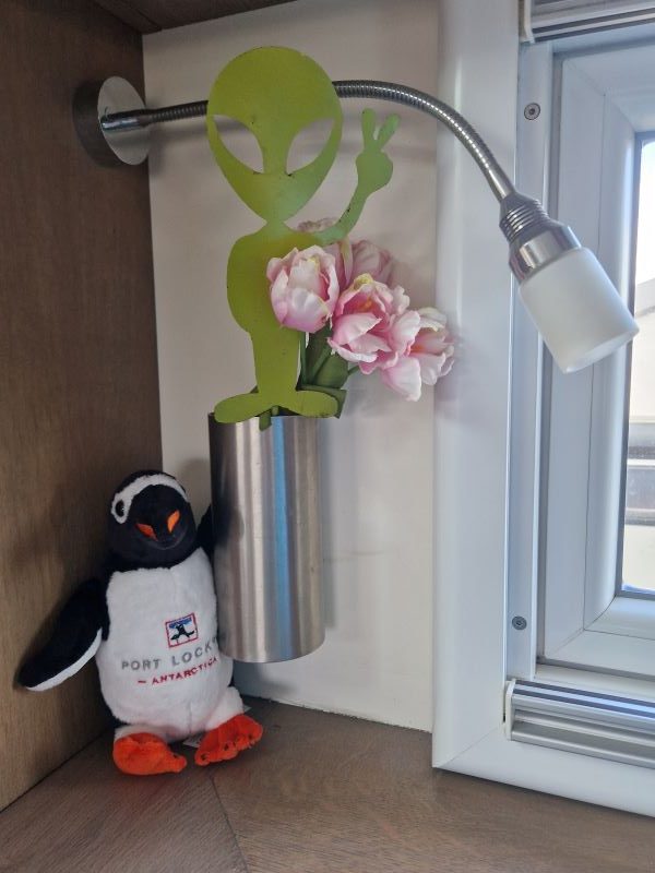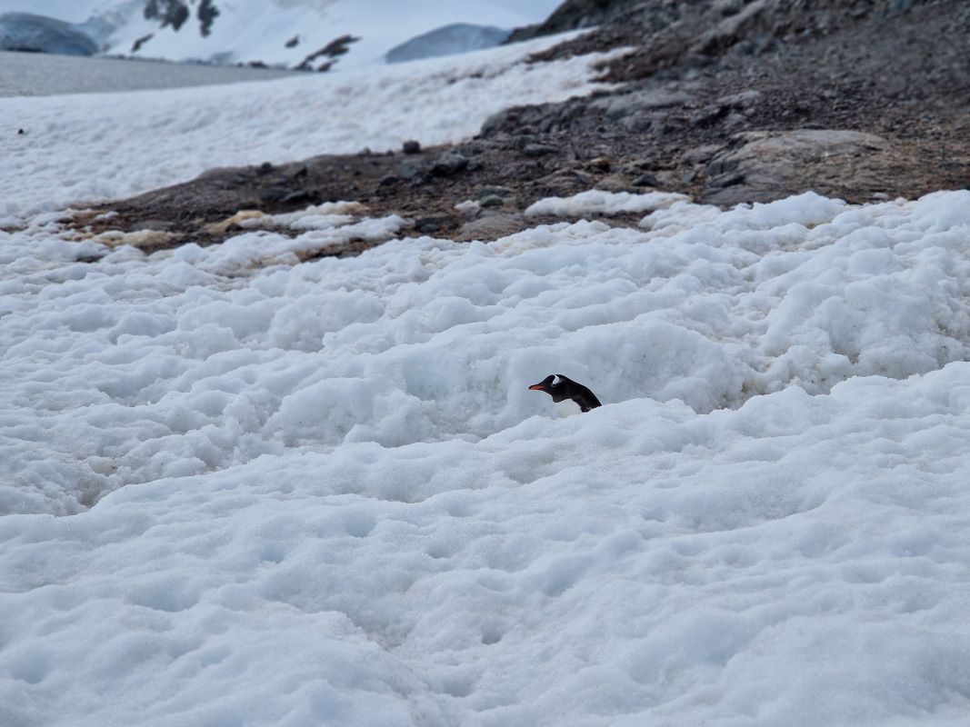 Leider können wir bei Port Lockroy nicht an Land gehen; denn die Pinguindichte ist so groß, dass der geforderte Mindestabstand nicht eingehalten werden kann. Der Schutz der Tiere geht vor. Und so kommt die Besatzung der Port Lockroy Forschungsstation eben auf unser Schiff zu einem spannenden Vortrag über das Leben und Arbeiten in dieser menschenfeindlichen Umgebung. Erklärtes Ziel ist es, die unberührte und in großen Teilen unbekannte Natur besser zu verstehen und dadurch zur Erhaltung des einzigartigen Ökosystems beitragen zu können. Als Unterstützung der hauptsächlich mit Spendengeldern finanzierten Stiftungsarbeit kann man Pinguinpatenschaften übernehmen. Am 24.12. kam das erste Küken der Saison auf die Welt, das Team hat es auf den Namen Jesus getauft….und wir haben ab jetzt „sweet little Jesus“ mit im Wohnmobil…