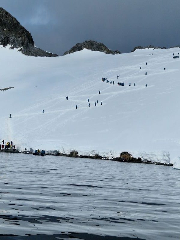 Dies bedeutet auch, dass der Tourismus extrem strikten Auflagen unterliegt (IAATO-Abkommen), um eine menschliche Kontamination zu verhindern. Beispiel: es dürfen nur jeweils maximal 100 Personen gleichzeitig an Land/auf das Eis. Kein Hinsetzen oder Ablegen von Gegenständen. Mindestens 5 Meter Abstand zu Pinguinen, 20 Meter zu Säugetieren. Unsere Expeditionsleiter achten mit viel Charme aber doch mit der gebotenen Strenge auf die Einhaltung der Regeln. Selbst unser Schiff darf nur mit maximal 10 Knoten fahren, um für die Meeressäuger keine Gefahr darzustellen.
