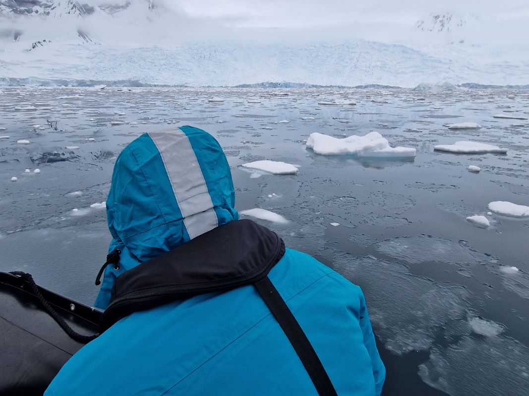 Die Gletscher Nobile, Bozhinov, Krebs, Wellman und Renard ergießen sich in die Charlotte Bay. Eine etwa 22km lange Einbuchtung in die westliche antarktische Halbinsel (zwischen Reclus Halbinsel und Cape Murray). Kalbende Gletscher und nahezu vollständige Bedeckung des Wassers mit kleinen Eisbergen. Zodiacausfahrt.