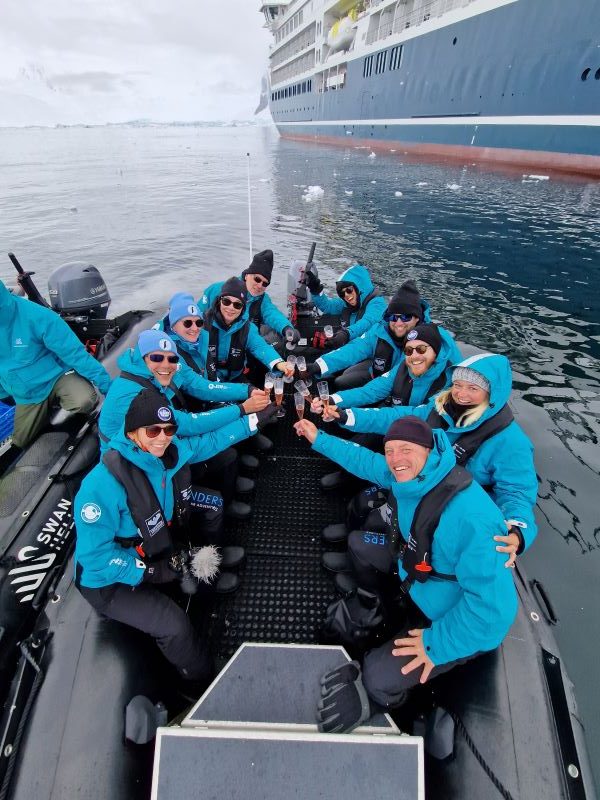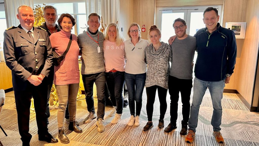 Antarktis-Gruppe mit Kapitän Rømnes