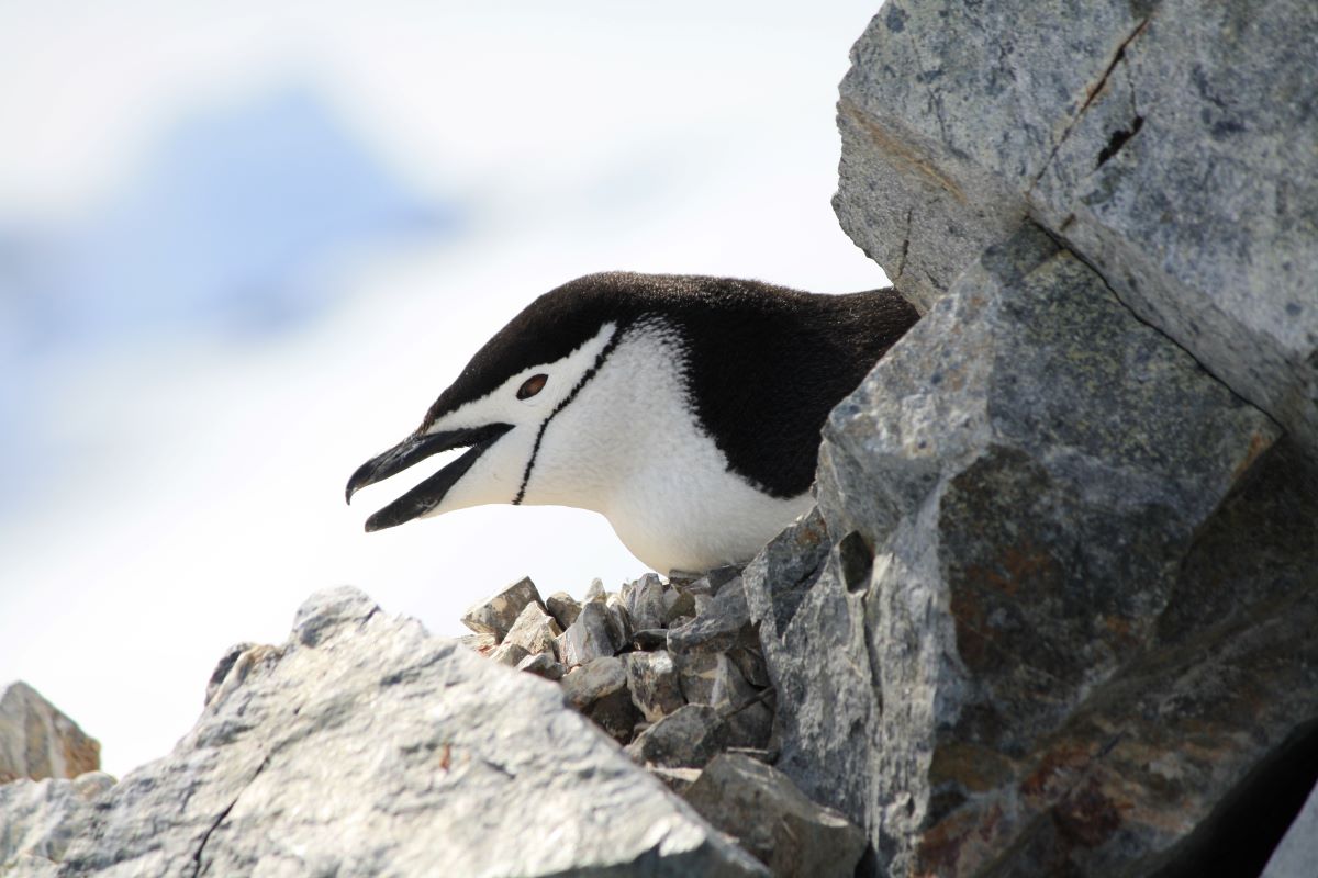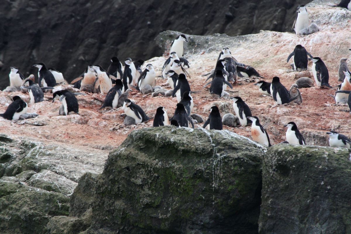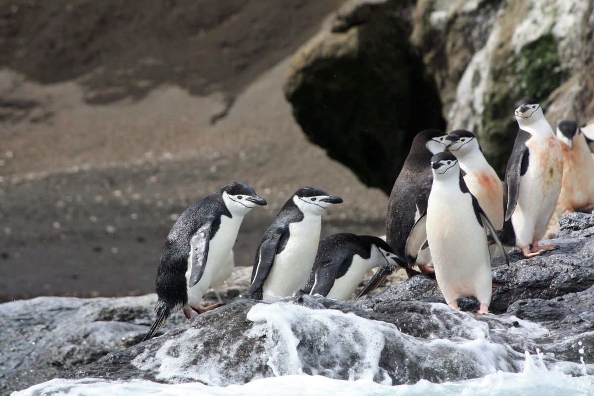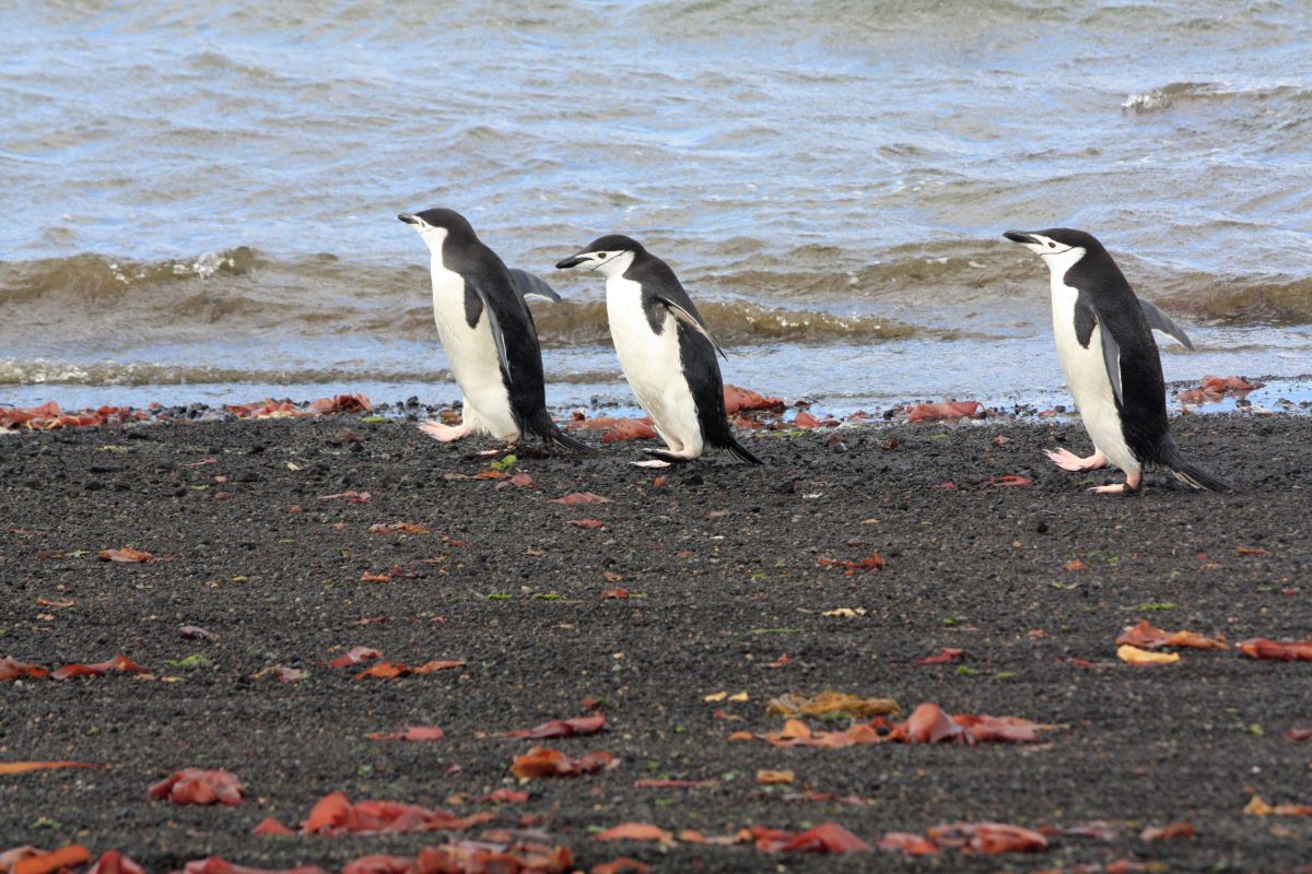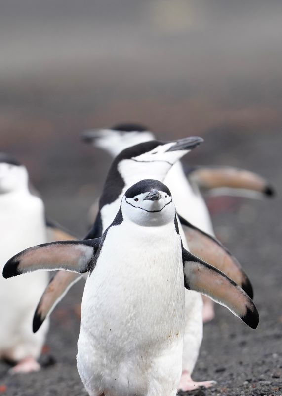 Baily Head (an der Außenseite des Vulkankegels Deception Island) mit seinen eindrucksvollen vulkanischen Gesteinsformationen bietet einen atemberaubenden Anblick auf die hier zu tausenden lebenden Chinstrap-Pinguine. Sie flitzen und springen zum Teil nur wenige Meter an unserem kleinen Zodiac vorbei.