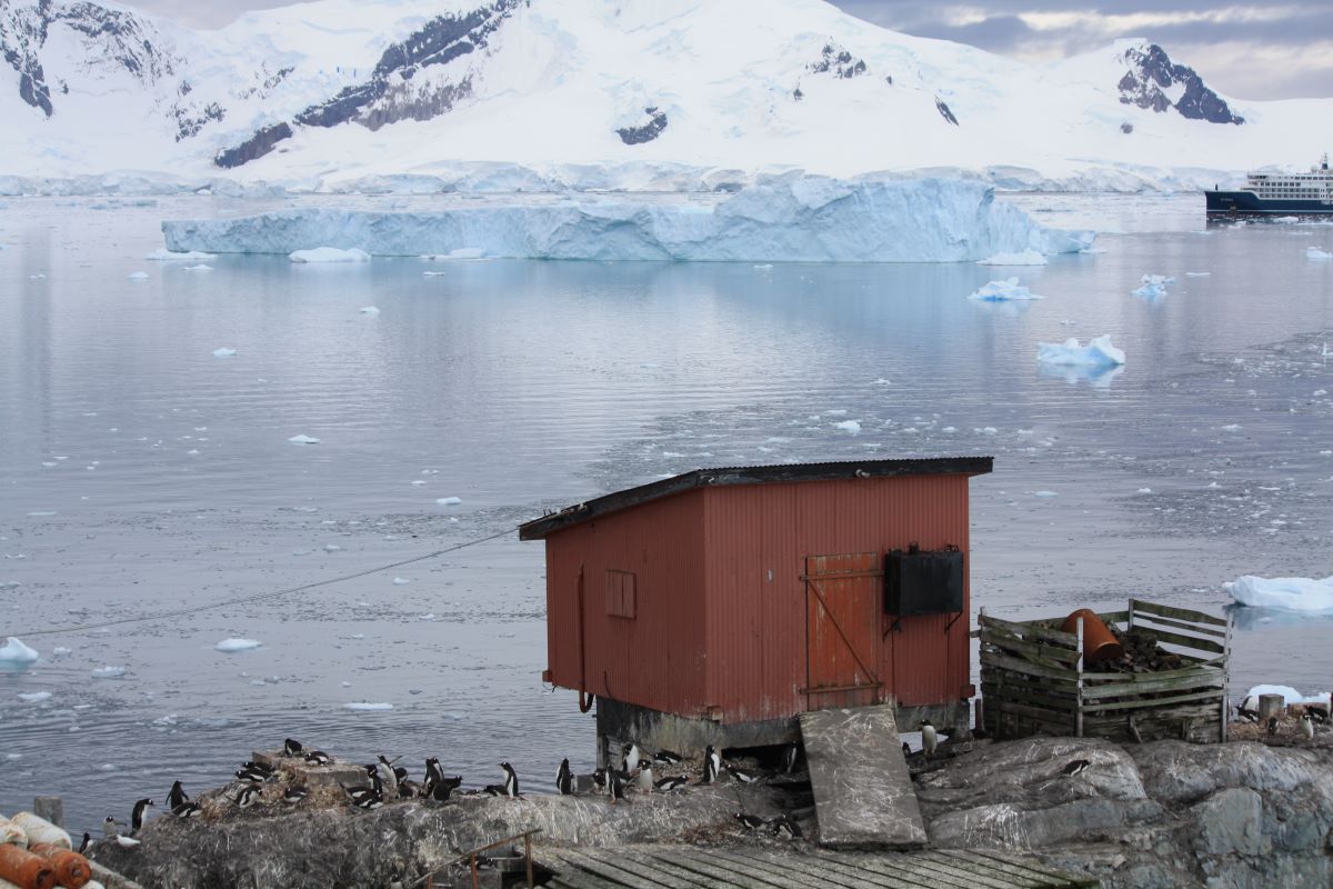 Die argentinische Forschungsstation Brown Station (benannt nach Admiral William Brown, dem Vater der argentinischen Navy/Marine) liegt auf der Sanaviron-Halbinsel des Graham Landes. Bei unserem Besuch (noch) nicht besetzt, da nur während der antarktischen Sommermonate Forschungsarbeiten stattfinden.