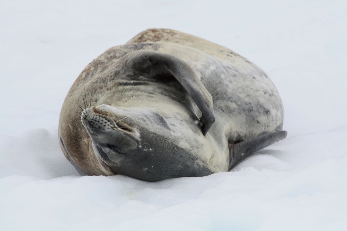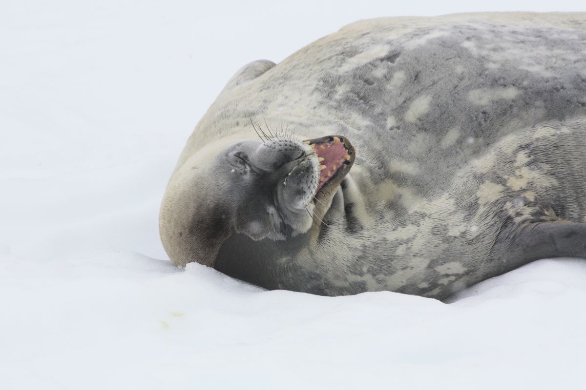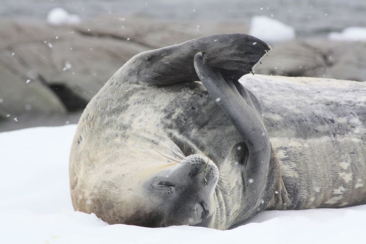 Die anschließenden „Pausen“ sind gefüllt mit lehrreichen Vorträgen von ausgebildeten Meeresbiologen und Geologen über die zauberhafte, jedoch sehr fragile Welt der antarktischen Fauna und Flora (!). Wir lernen, was katabatische Winde sind, wie die Nahrungskette vom Phytoplankton über Krill zu Seehunden & Pinguinen bis hin zu den Walen funktioniert, über Wärmeisolierung der Tiere im kalten Eis und wie die Tiere es schaffen, trotz direkten Kältekontakts ihre Gliedmaßen (z.B. Pinguinfüße, Walflossen) warm zu halten. Wie die ersten Entdecker und in der Folge dann die Wal- und Robbenfänger zurechtkamen.