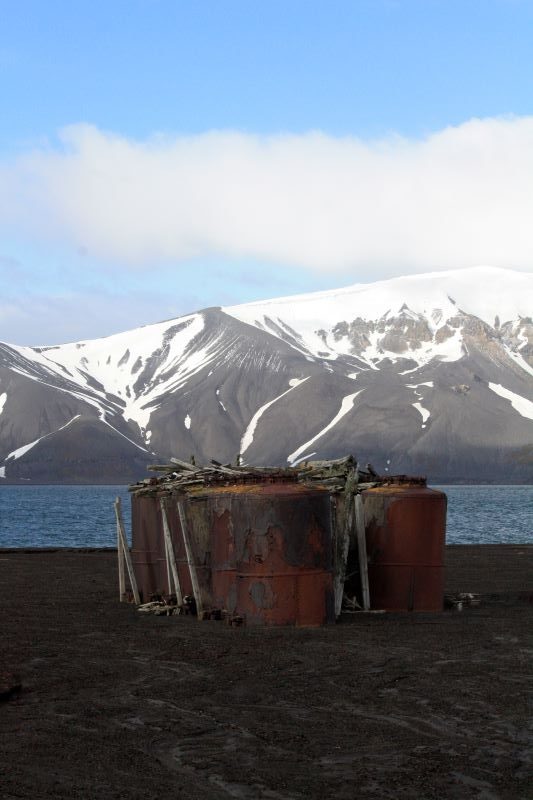 Whalers Bay: diese spektakuläre Bucht inmitten des Kraters des immer noch aktiven Vulkans Deception Island verkörpert eine reiche Geschichte als wichtige Walfang- und Walverarbeitungsstation in der ersten Hälfte des 20. Jahrhunderts. Von Briten 1820 entdeckt erfuhr die Bucht ihre „Blüte“ als Zentrum für die Verarbeitung von Walfett in Tranöl. Der Strand ist immer noch übersät mit Hinterlassenschaften, inkl. Fabrikanlagen, Gebäuden, einem kleinen Friedhof und einem Flugzeughangar (!). Fast schon eine Art Freilichtmuseum, das stark zum Nachdenken über den Einfluss des Menschen auf die empfindliche Umwelt anregt.