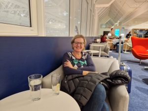 In der Lounge von Iberia verwöhnen wir uns mit ein, zwei Gläsern spanischem Rioja, bevor dann Ruck-Zuck die Zeit zum Boarden gekommen ist.