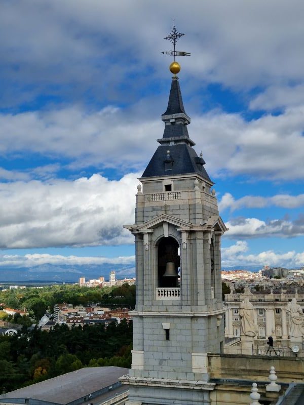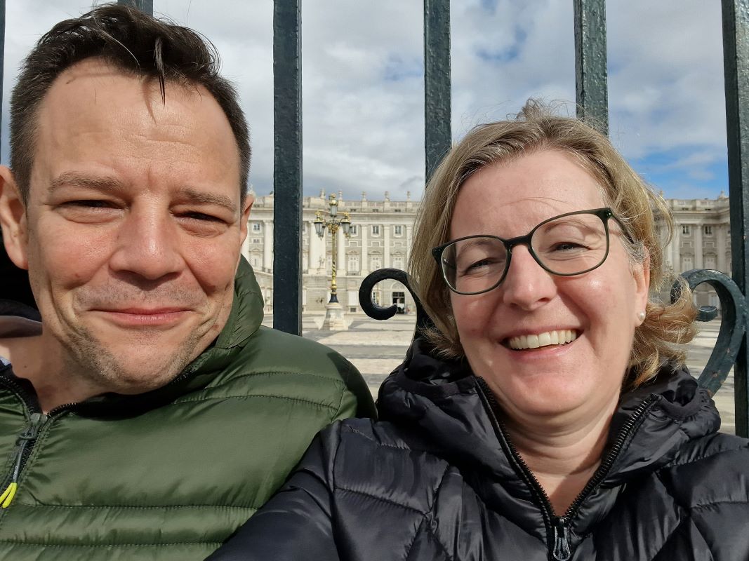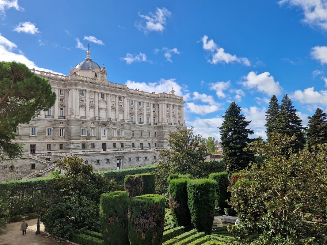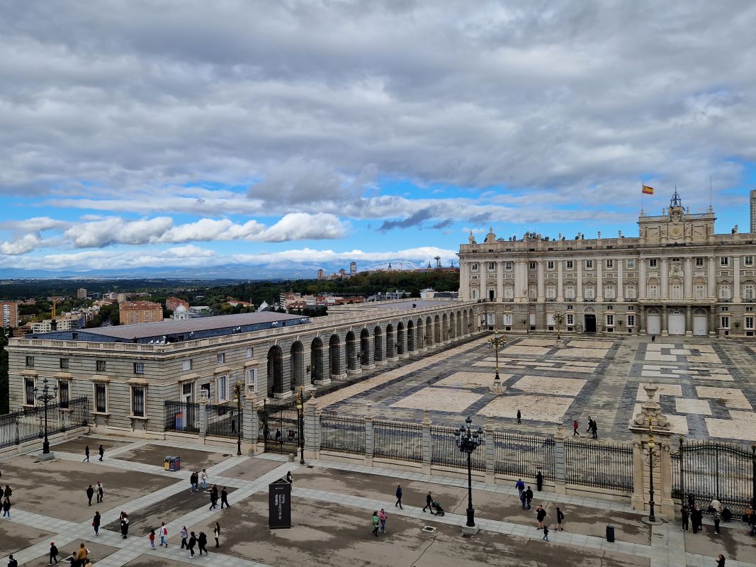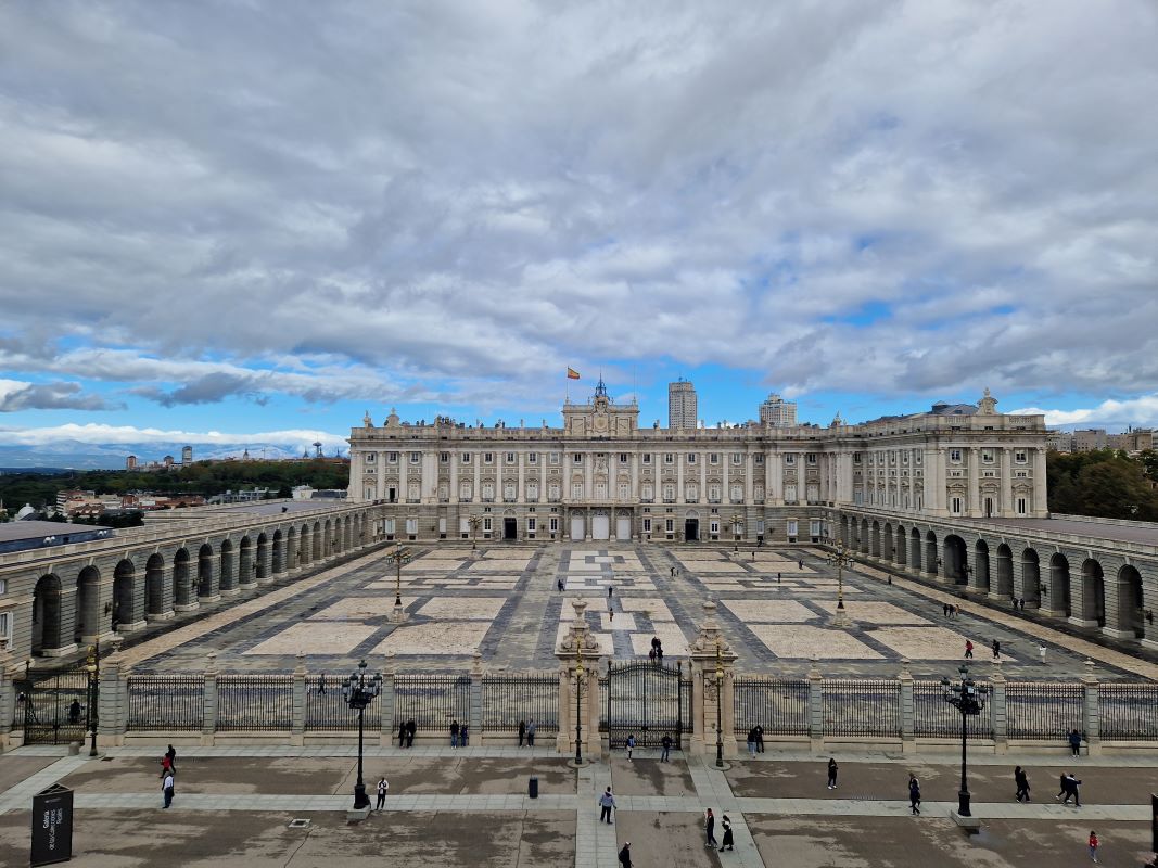 Gleich nach dem Frühstück ubern wir zum Palacio Real, ein imposantes königliches Schloss, dass im Herzen der Stadt liegt. Er ist einer der größten Paläste Europas (mit z.B. 3500 Zimmern!) und ein Symbol für die spanische Monarchie. Leider ist er heute für Besucher geschlossen (ist die königliche Familie zu Hause?). Und so können wir nur von außen durch den Zaun spitzen.