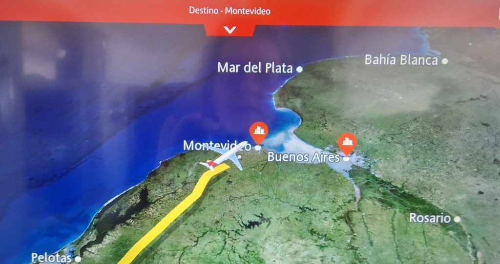 Die 13 Stunden Nachtflug von Madrid nach Montevideo verschlafen wir im wahrsten Sinne des Wortes und so kommen wir recht ausgeruht am 31. Oktober morgens pünktlich um 8.55 Uhr in Montevideo an.