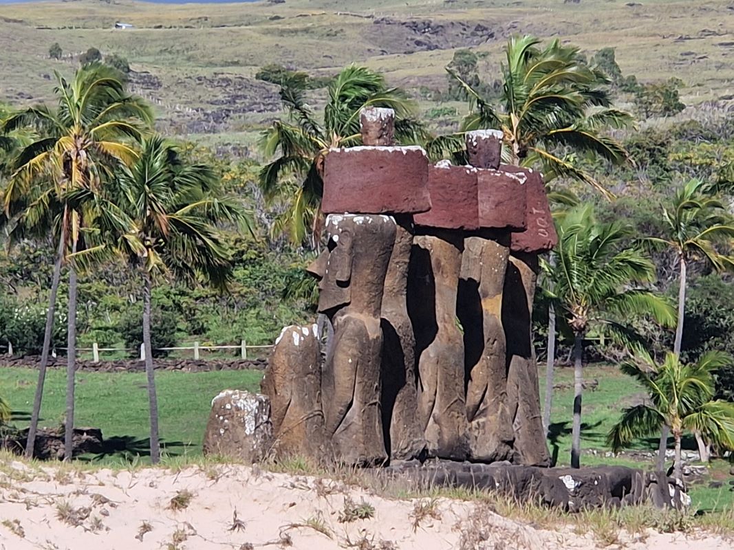 So stehen am Anakena-Strand eine Gruppe von sieben Moais, hier soll der Rapa-Nui-König mit seinem Gefolge und kleinen Volk ja zuerst angelandet sein.