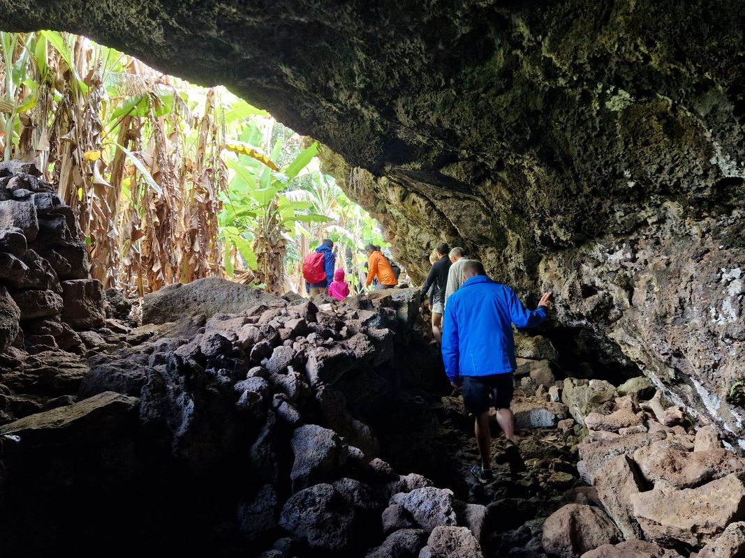 Während der folgenden zwei Tage erkunden wir in einer kleinen Gruppe (alles Gäste unseres Hotels) angeführt von unseren Inselführern Toki und Ringo die vor ca. 3 Mio Jahren aus dem 3000m tiefen Pazifik hervorgequollene Vulkaninsel.