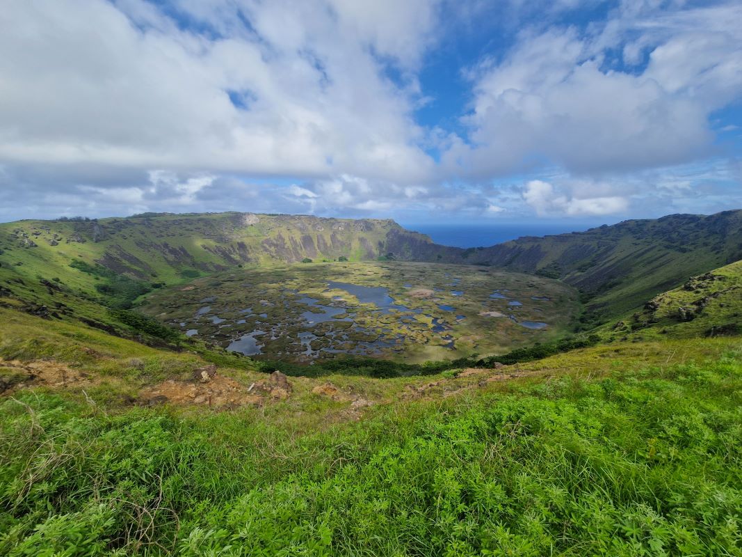 Der letzte Höhepunkt auf unserer Entdeckungstour über die Osterinsel ist der Besuch des Vulkankraters Rano Kau in dessen wassergefüllten Tiefen ein Pilz gedeiht (in freier Natur einzigartig auf der Welt und nur hier in diesem Krater!), aus dem ein hochpotenter Wirkstoff (Rapamycin) zur Vermeidung von Abstoßungsreaktionen nach Organtransplantationen gewonnen wird. Die Entdeckung dieses Wirkstoffs in den 1980er Jahren war ein Durchbruch für die Nachbehandlung von Transplantationspatienten und rettet seitdem unzählige Menschenleben.