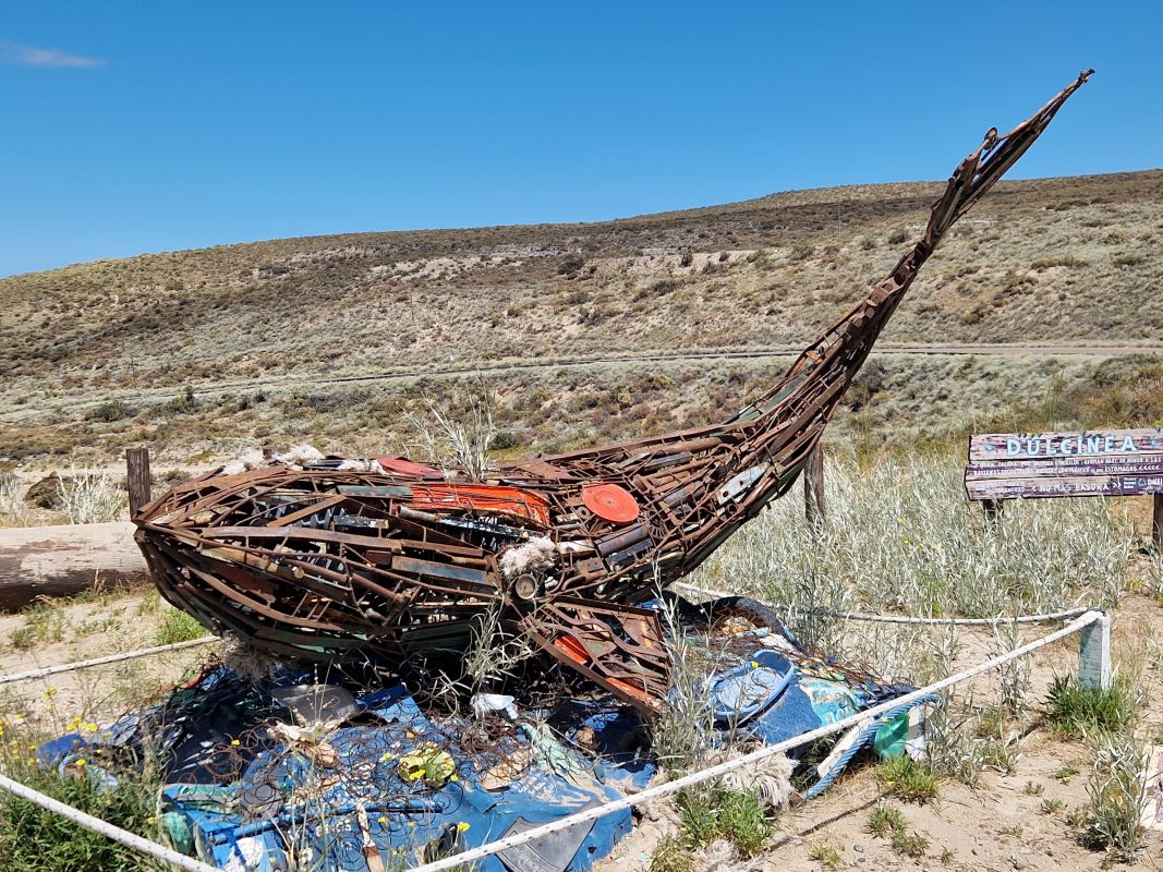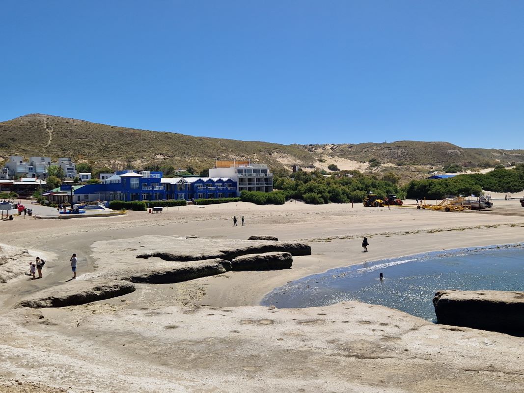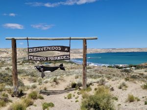 Bei Sonnenschein und strahlend blauem Himmel cruisen wir auf die Halbinsel Valdés. Ein riesiges Naturschutzreservat am Atlantik mit einzigartigen Bewohnern an seinen Küsten. Eintritt bezahlen und kurzer Halt am Touristenzentrum mit allerlei lehrreichen Schautafeln. Danach geht es noch fast 30 km weiter in den einzigen Ort auf der Halbinsel: Puerto Pirámides, auf den Campingplatz; Wildcampen ist im Reservat verboten.