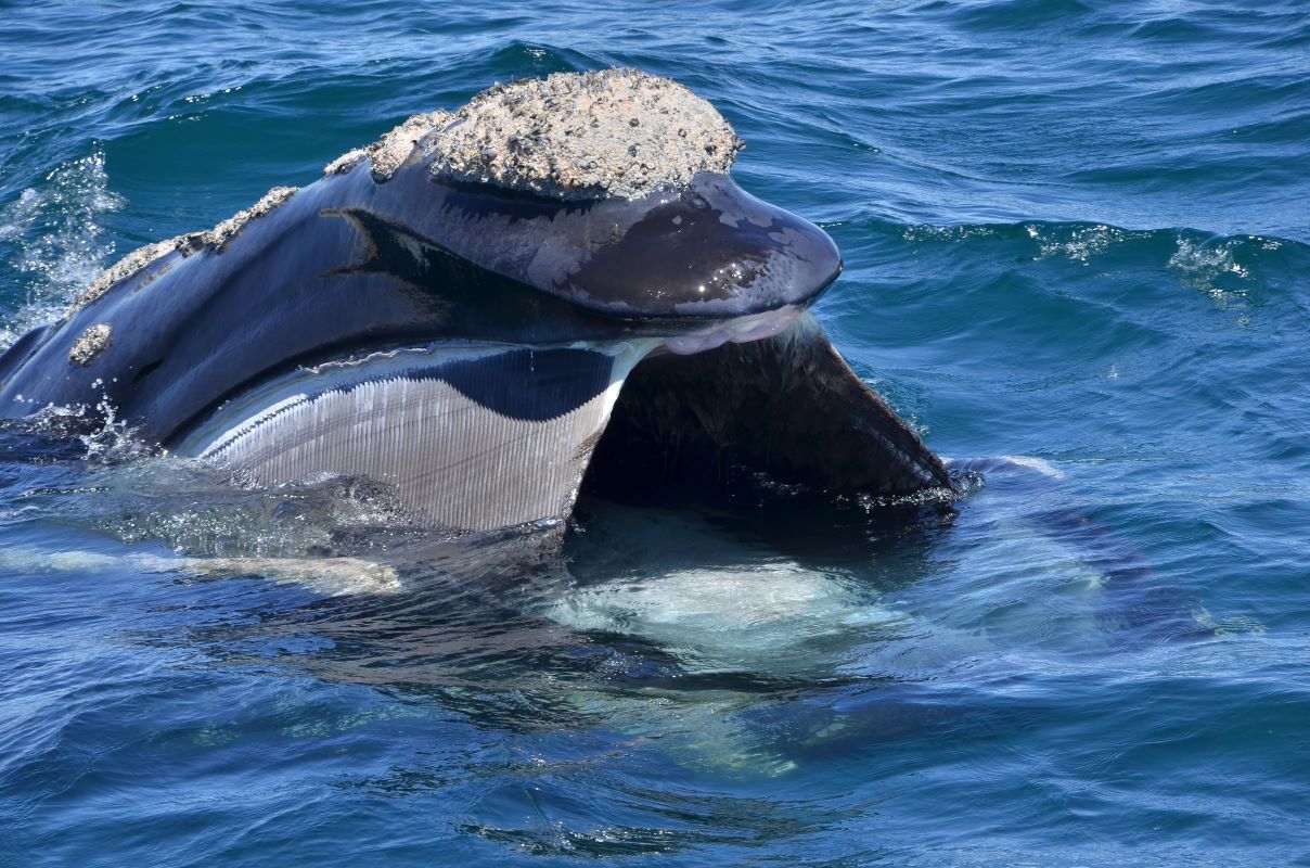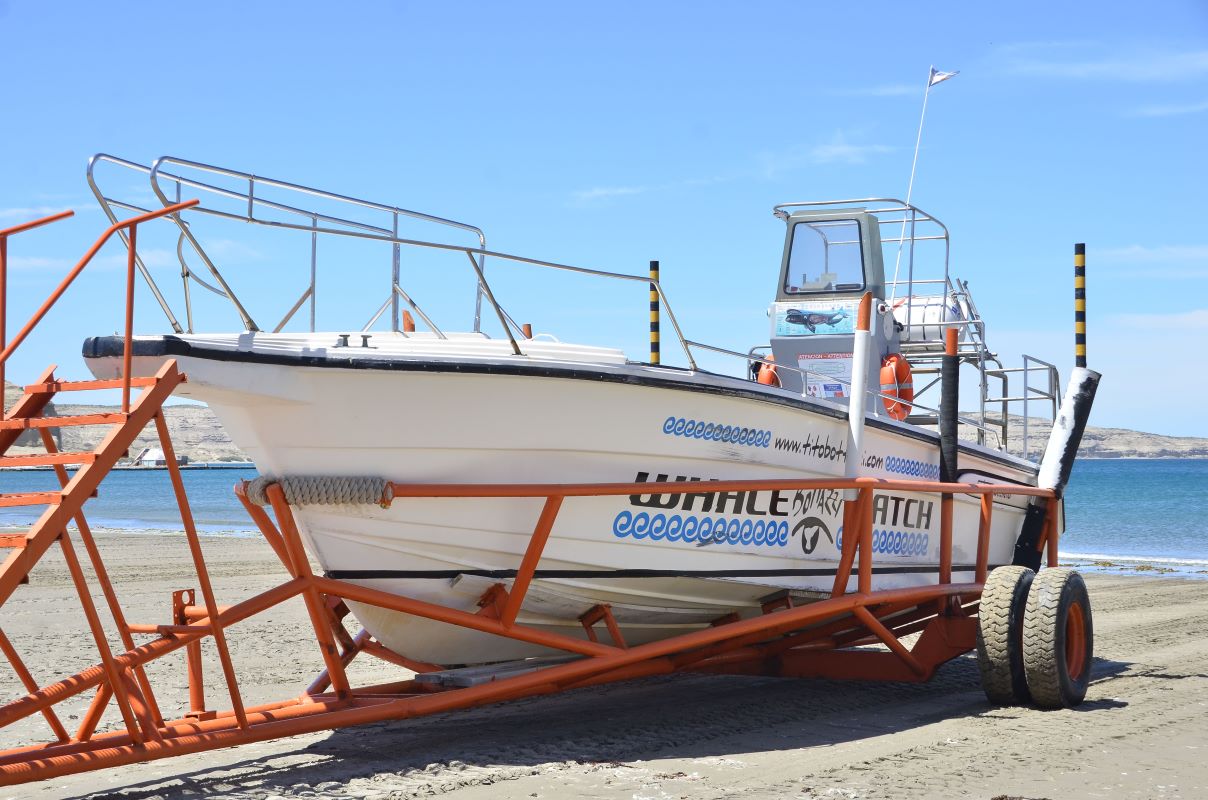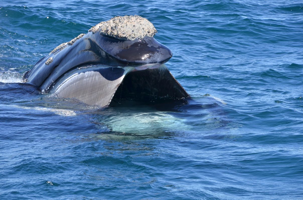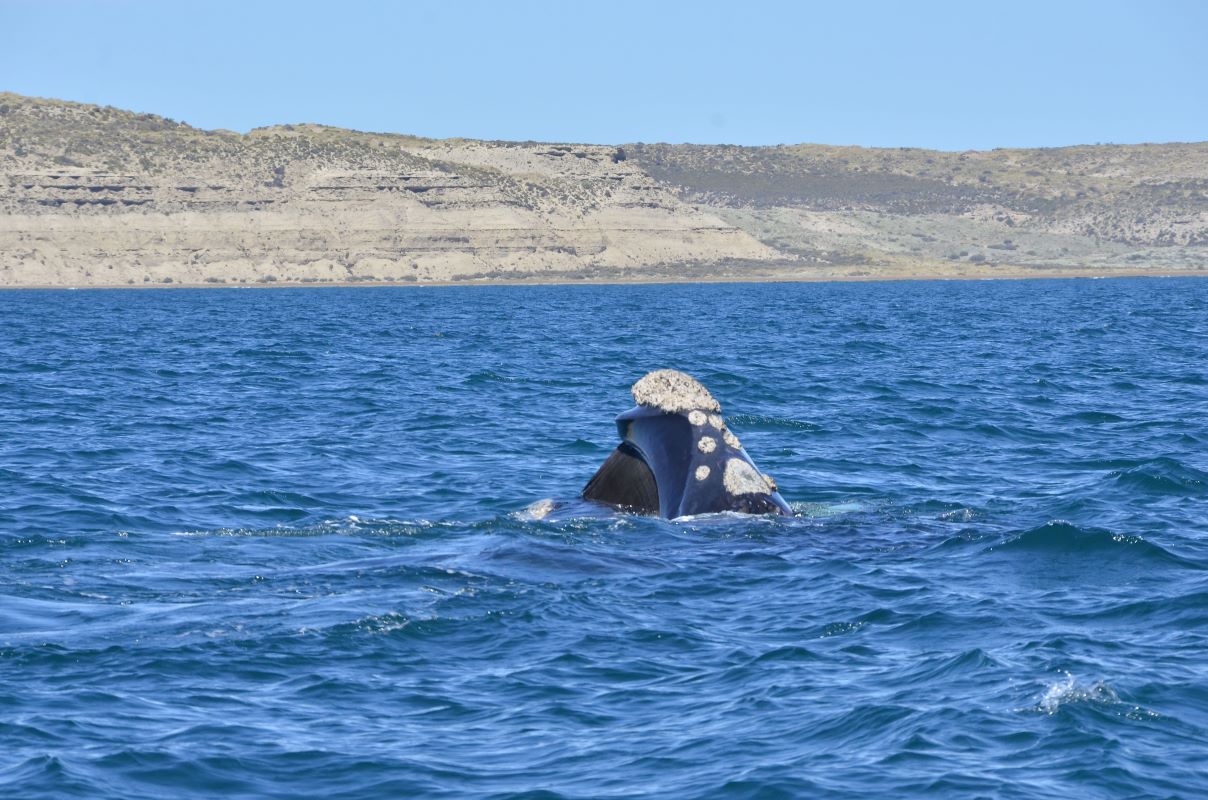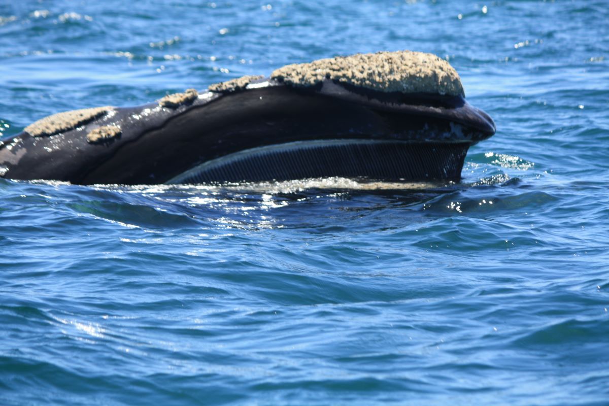 Über den flachen Strand wird unser Boot auf einem Anhänger rückwärts ins Meer geschoben und schon fliegen wir über die Wellen hinaus aus der Bucht von Puerto Pirámides. Es ist das Ende der hiesigen Walsaison zwischen September und Anfang Dezember. Die meisten Tiere sind wieder weitergezogen Richtung Süden in die antarktischen Futtergründe. Und so suchen alle gespannt den Horizont nach den typischen Ausblasfontänen der Wale ab. Nach etwas mehr als 30 Minuten Fahrt können wir unser Glück kaum fassen. Sage und schreibe 5 Glattwalkühe (Southern Right Whales) mit ihren jeweiligen Kälbern schwimmen zusammen gemächlich ihre Bahnen und filtern Krill (kleinste Krebstierchen) aus dem Wasser. Immer hin und her. Mit abgestelltem Motor und in völliger Stille bestaunen wir die mächtigen, erhabenen und friedlichen Tiere, die zuweilen ganz, ganz nah ans Boot herankommen. Einzig das Blasen und das Klatschen der großen Fluken ist zu hören. Ansonsten ziehen diese Riesen für uns völlig lautlos durch das Wasser. Wir lassen an dieser Stelle die Bilder für sich sprechen.