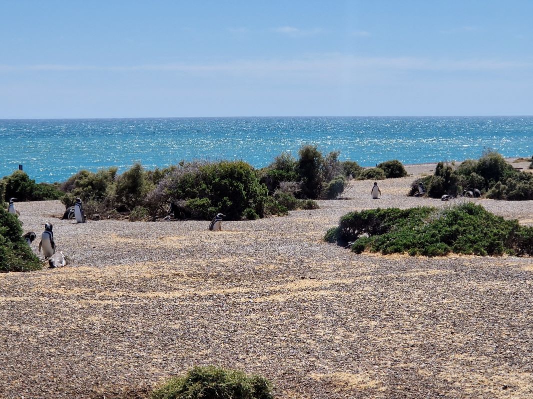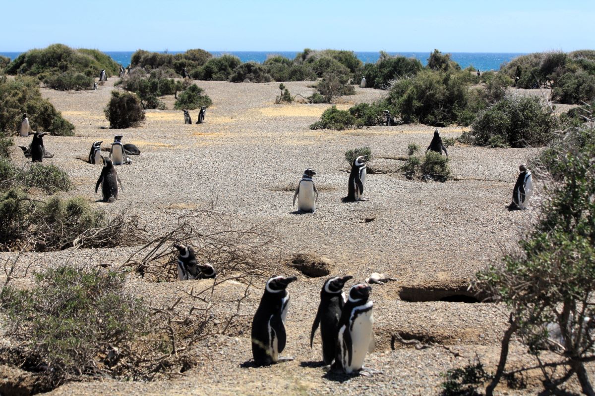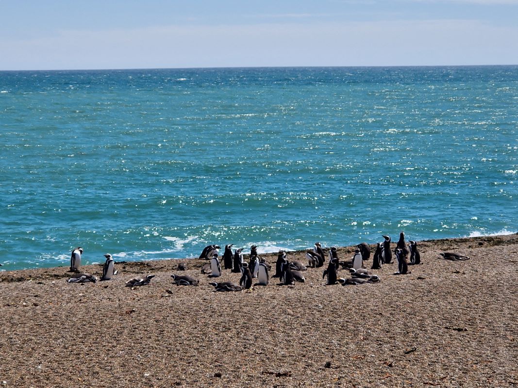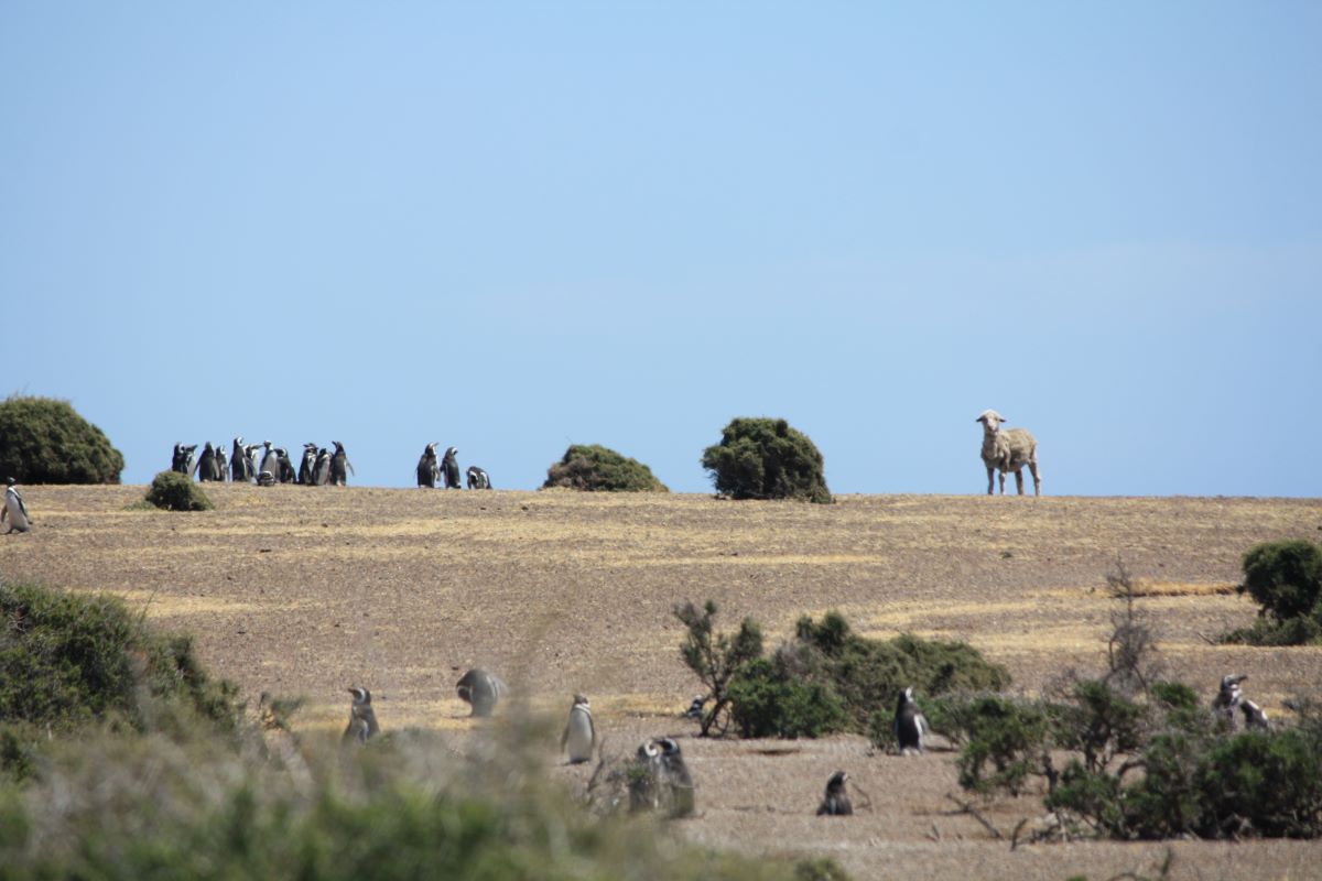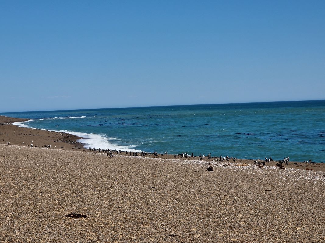 Am nächsten Morgen brechen wir früh auf. Über eine Schotterpiste gelangen wir nach 90 km staubiger Fahrt bis fast an die Nordspitze der Halbinsel Valdés zur Estancia San Lorenzo. Um 1970 hat sich eine kleine Pinguinkolonie von knapp 100 Tieren für das private Gelände, eigentlich eine Schaffarm, als neues Zuhause entschieden und wächst und gedeiht seither prächtig. Die Lorenzo-Familie hat daraufhin für einen Teil ihrer küstennahen Farmfläche einen Naturschutzstatus erhalten und bietet nun Führungen in einem moderaten Maß an. Bei der letzten Zählung vor ein paar Jahren waren es bereits über 200.000 Magellanpinguine.