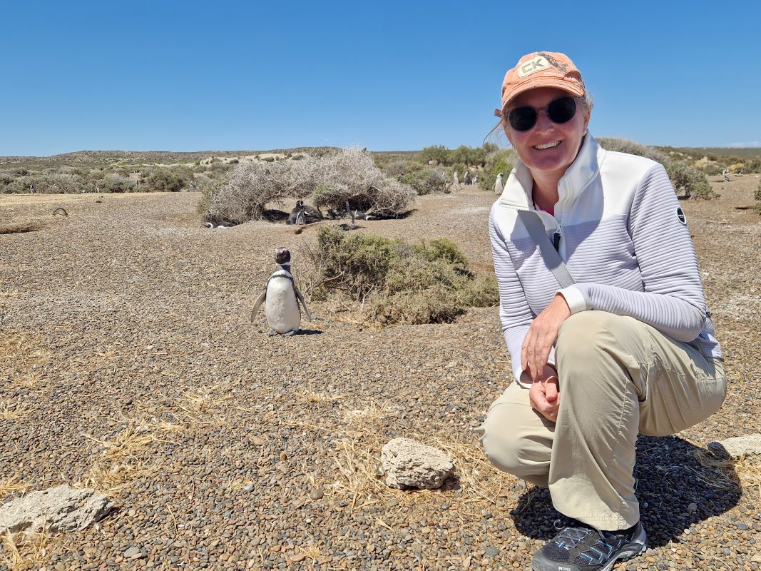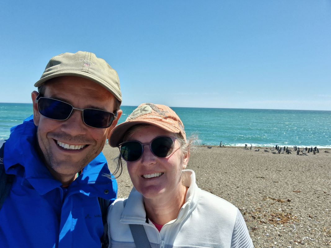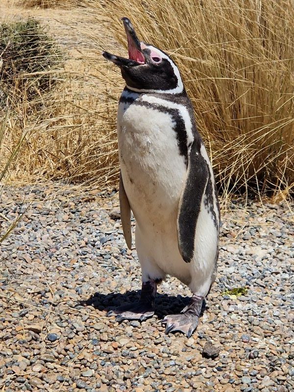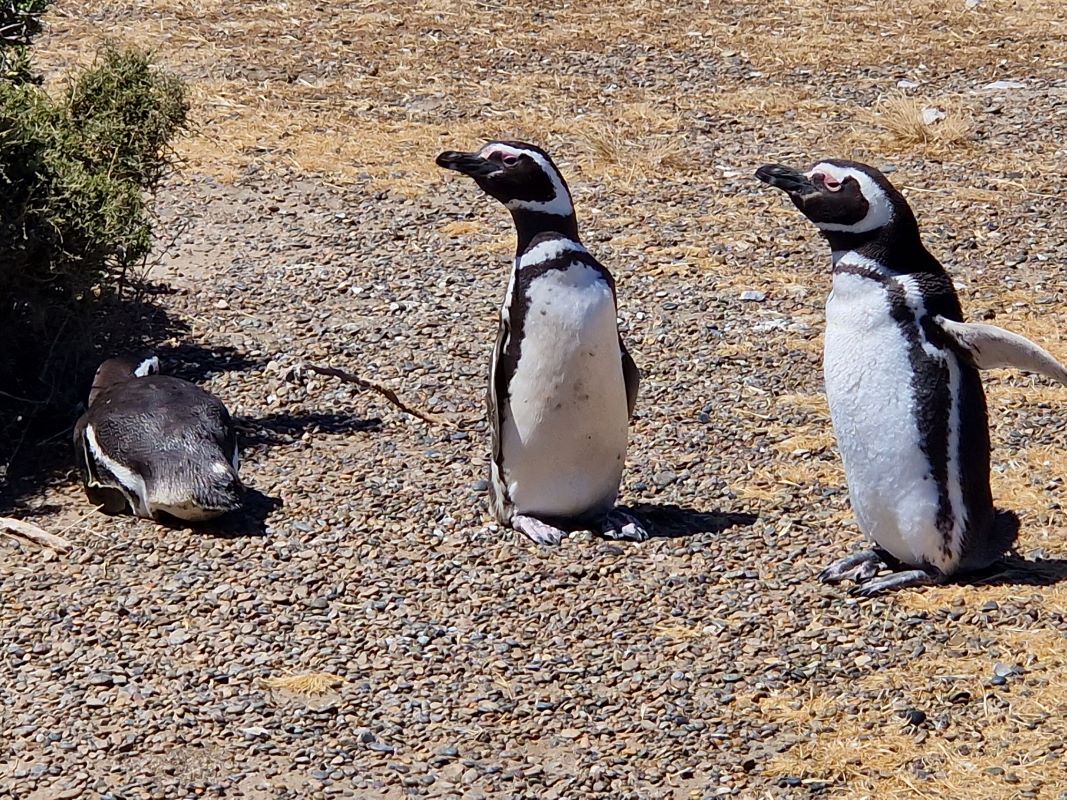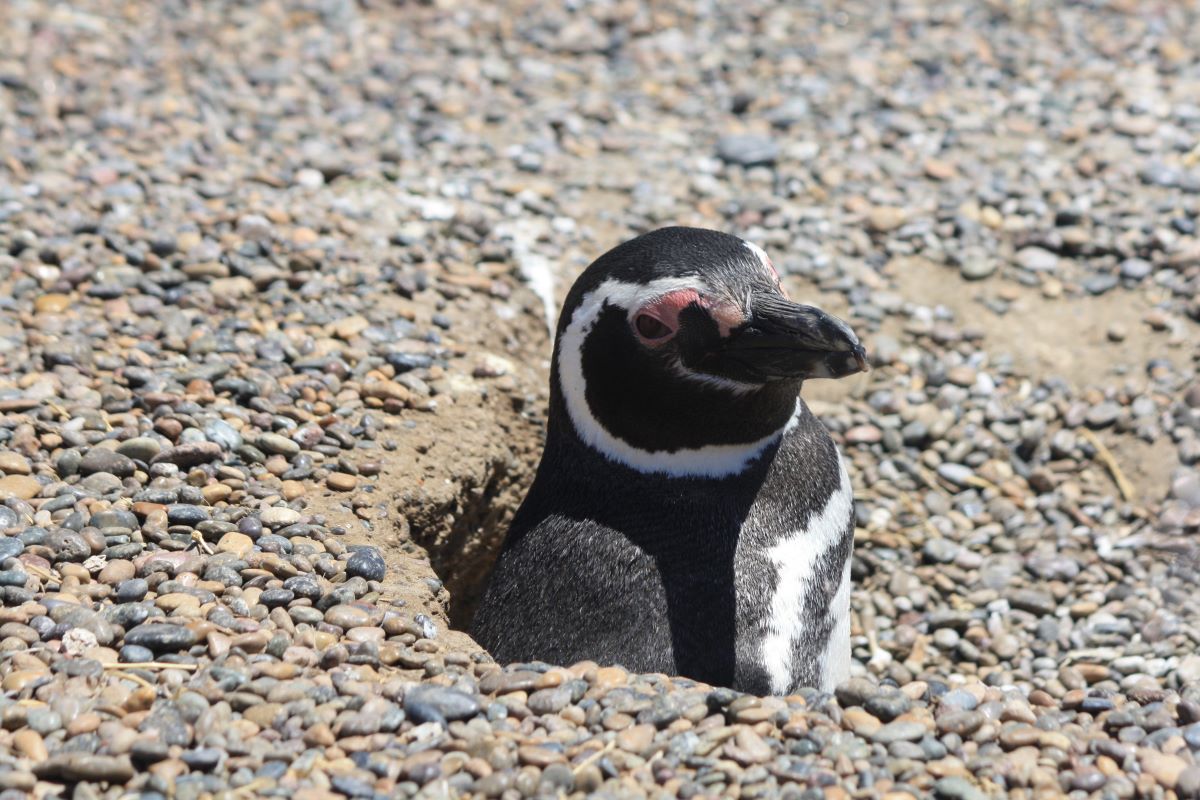 Am nächsten Morgen brechen wir früh auf. Über eine Schotterpiste gelangen wir nach 90 km staubiger Fahrt bis fast an die Nordspitze der Halbinsel Valdés zur Estancia San Lorenzo. Um 1970 hat sich eine kleine Pinguinkolonie von knapp 100 Tieren für das private Gelände, eigentlich eine Schaffarm, als neues Zuhause entschieden und wächst und gedeiht seither prächtig. Die Lorenzo-Familie hat daraufhin für einen Teil ihrer küstennahen Farmfläche einen Naturschutzstatus erhalten und bietet nun Führungen in einem moderaten Maß an. Bei der letzten Zählung vor ein paar Jahren waren es bereits über 200.000 Magellanpinguine.