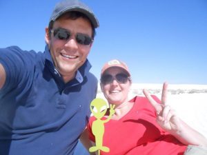 Aus Nordamerika haben wir einen Reisebegleiter mitgebracht. Ein kleiner, grüner Alien ist uns in New Mexico aus dem Himmel vor das Auto gefallen. Seither hat er uns treu begleitet und sich auf manches Foto geschmuggelt. Aktuell wohnt er in unserem PuCe und bewahrt es als Glücksbringer vor allem Schlechten.