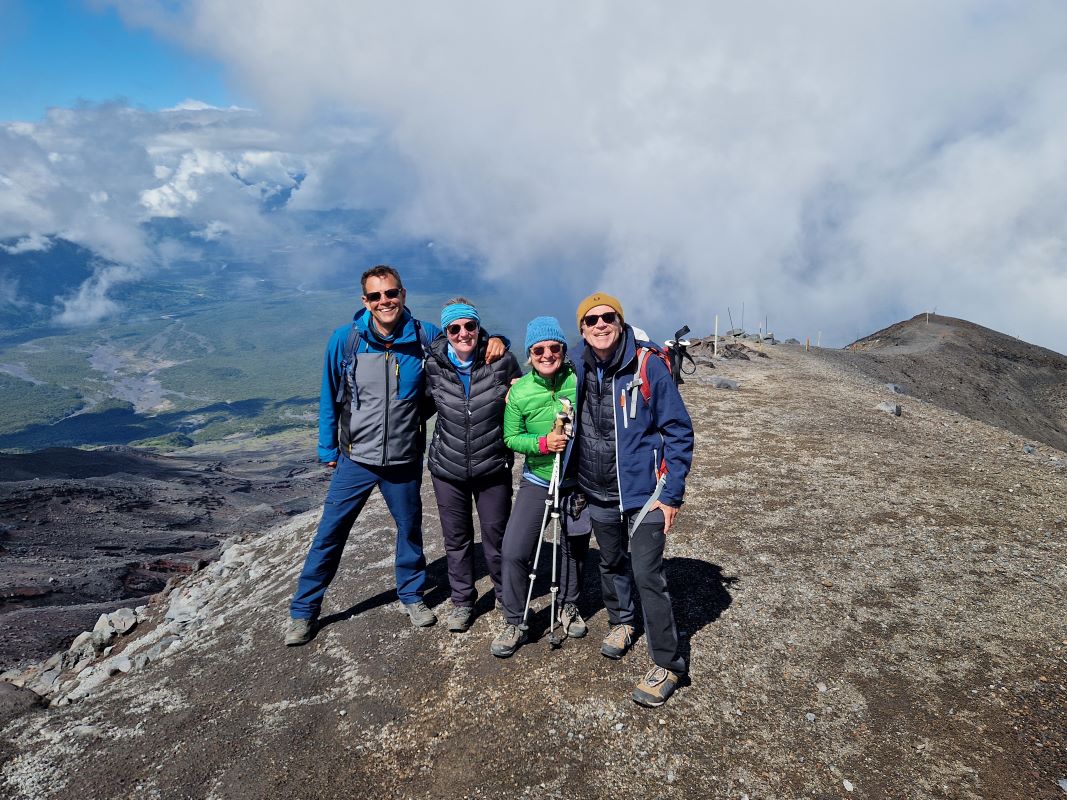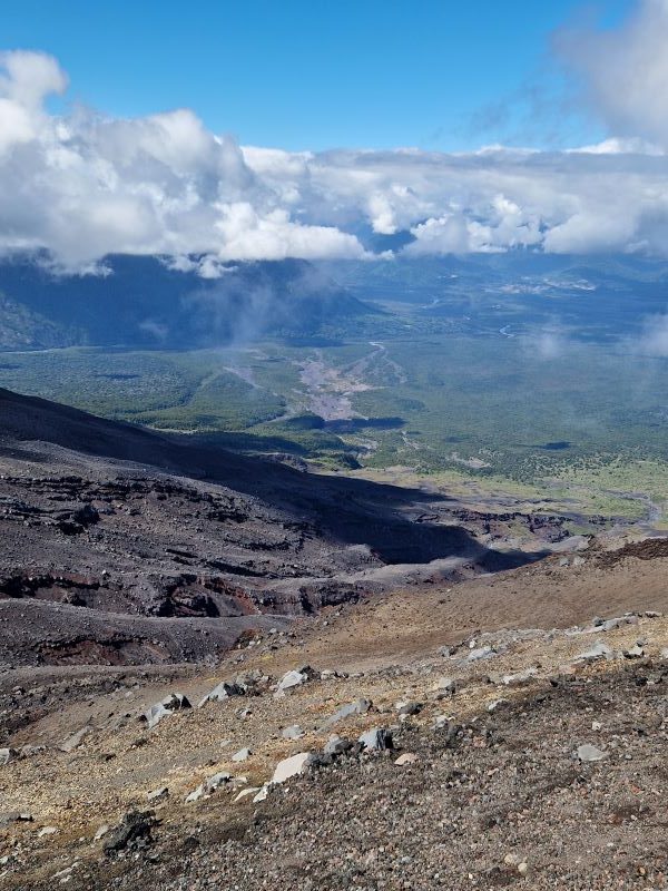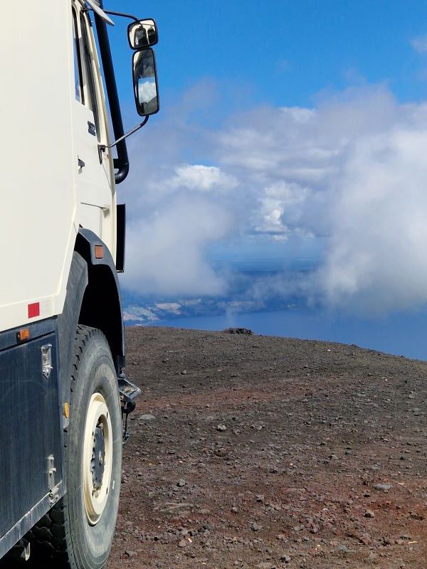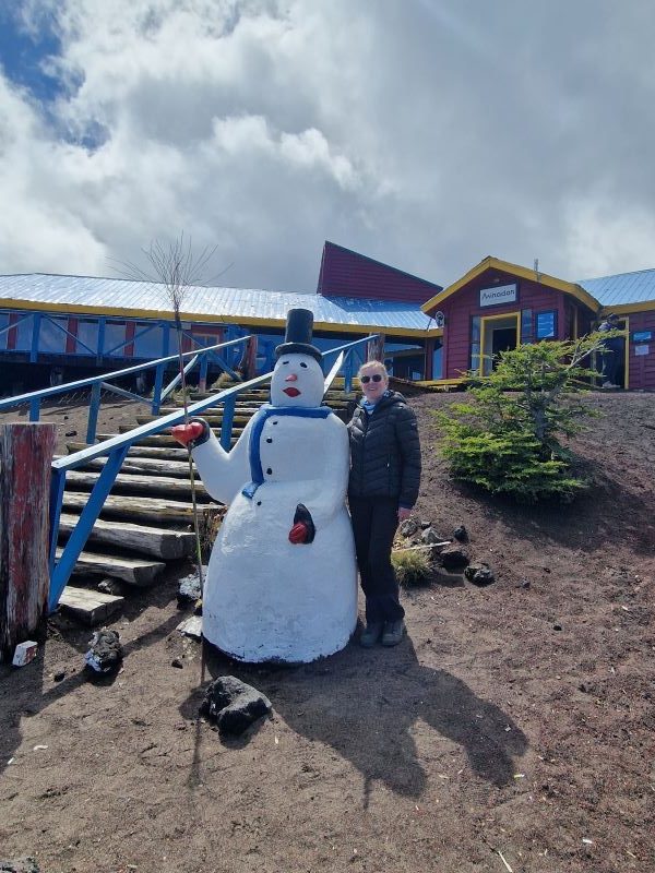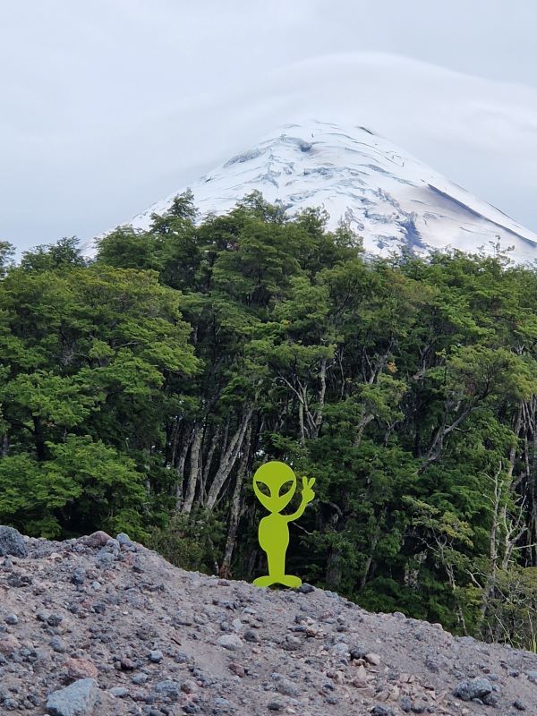 Nachdem wir die letzten Tage den Vulkan Osorno quasi umrundet haben, fahren wir am Vormittag bei Schleierwolken und wieder blauem Himmel die sehr, sehr steile Straße hoch zur Sesselliftstation. 12 Kilometer nur bergauf. Auf halber Strecke, am ersten Mirador, lassen wir PuCe verschnaufen und gönnen uns einen Kaffee umschwirrt von Kolibris, die durch die großen, rotblühenden Fuchsienbüsche um uns herum flitzen. Da Iris und Pavel die gleiche Idee hatten (wir treffen sie bei unserem Kolibri-Stopp), beschließen wir, gemeinsam mit dem Sessellift zum Gletscher hochzufahren.