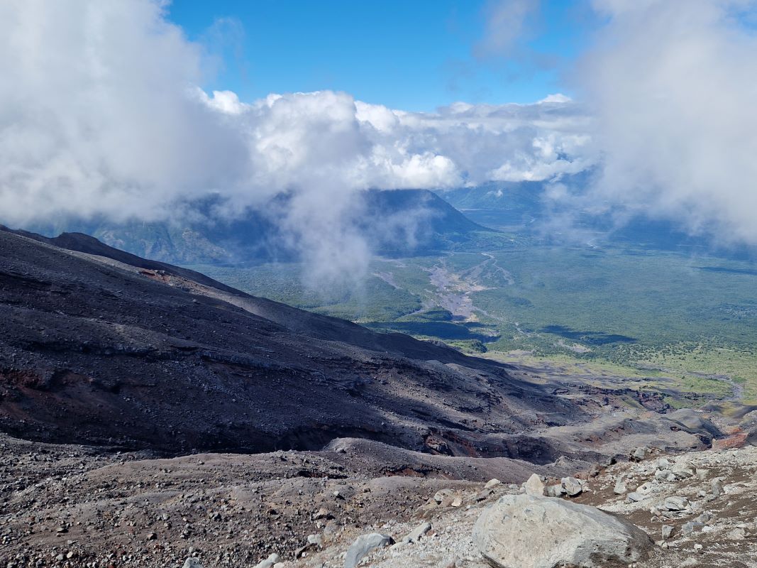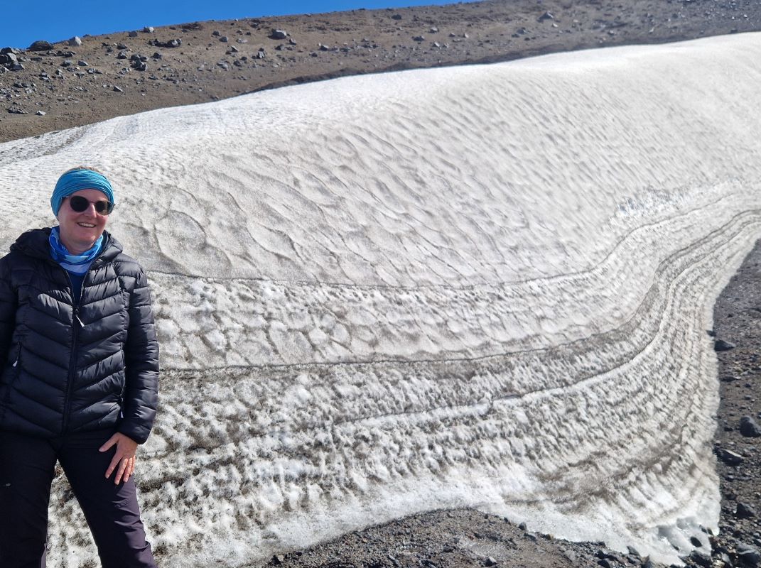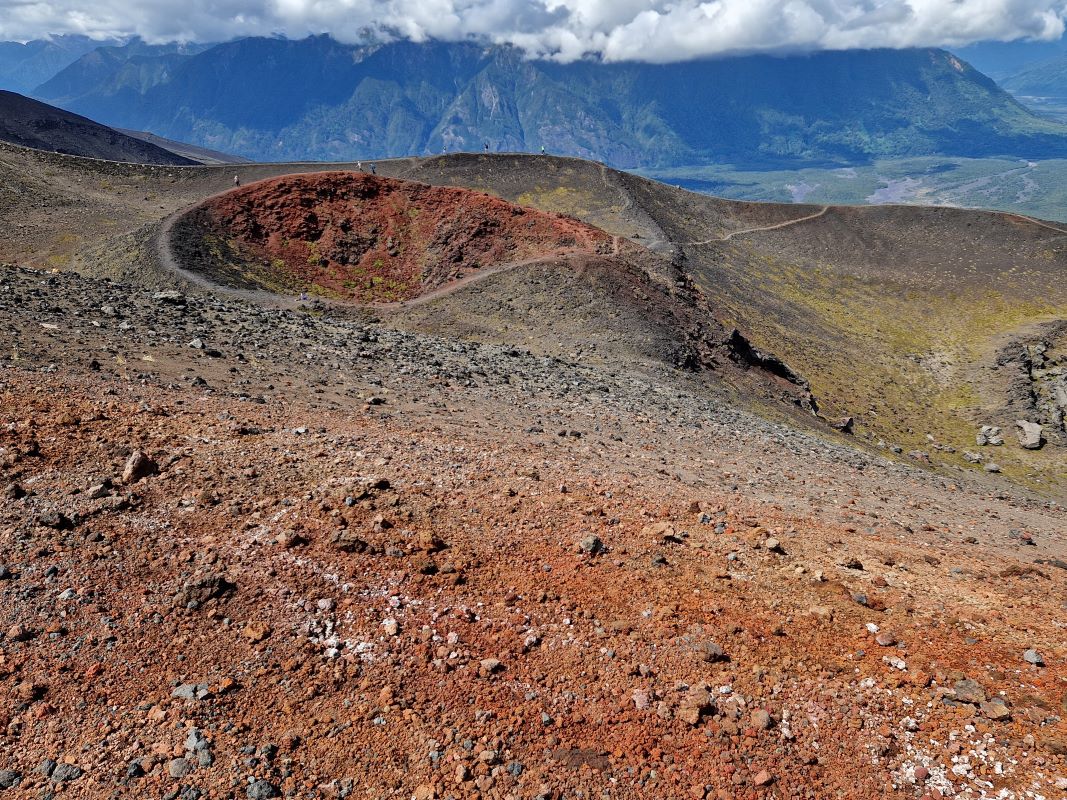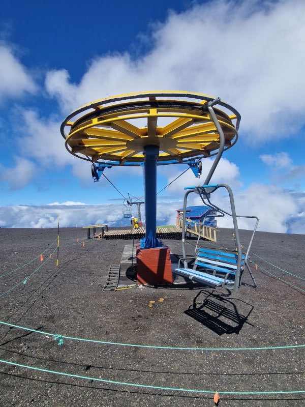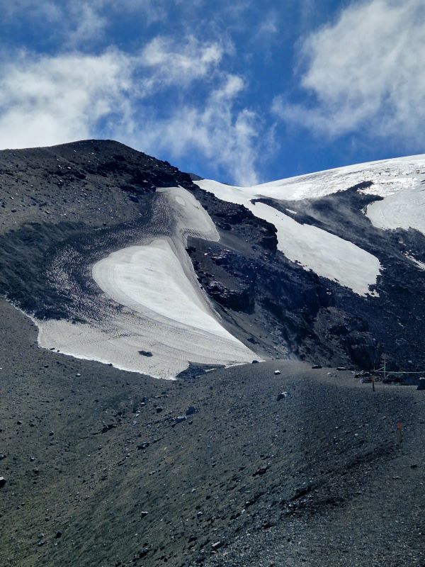 Ganz gemächlich zuckelt der betagte Lift in die Höhe. Übrigens ein Geschenk der Schweizer an die chilenischen Alpin-Kollegen. Laufen wäre fast schneller gewesen…aber besser schlecht gefahren, als gut gelaufen. Nach einem kurzen Aufstieg zum Gletscher, wandern wir am Rand einer der kleinen Nebenkrater zurück zum Parkplatz.