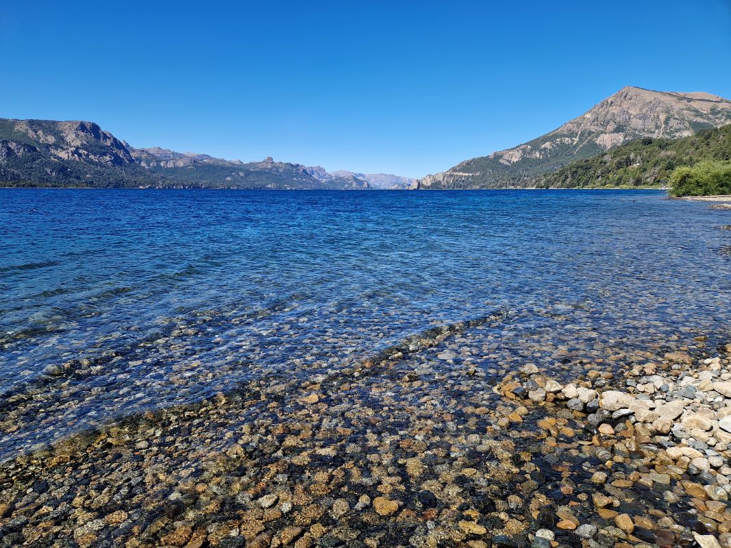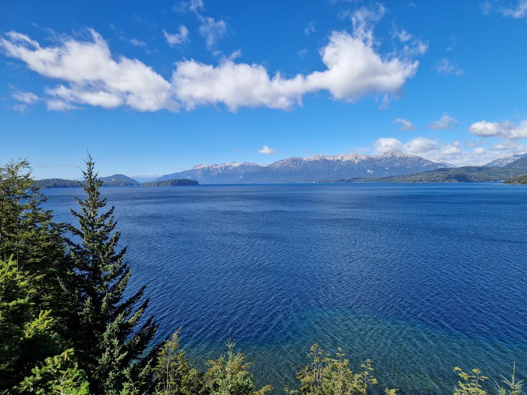 Von nun an befinden wir uns im argentinischen „Gebiet der sieben Seen“ (región de los siete lagos) mit seinen Nationalparks Nahuel Huapi und Lanín. Doch zuerst führt uns der Weg nach Villa La Angostura zum Volltanken und Einkaufen beim nächstgrößeren Supermarkt La Anonima. Es dauert bis unsere Tanks und die Lager wieder aufgefüllt sind. Hoch über dem gewaltigen Lago Nahuel Huapi, an dessen Ufer wir schon seit dem Nachmittag entlangfahren, steuern wir unserem Ziel Bariloche und dem gepflegten Lago Azul RV Park entgegen. Selbst-Check-In per WhatsApp. Wir sind zufrieden!