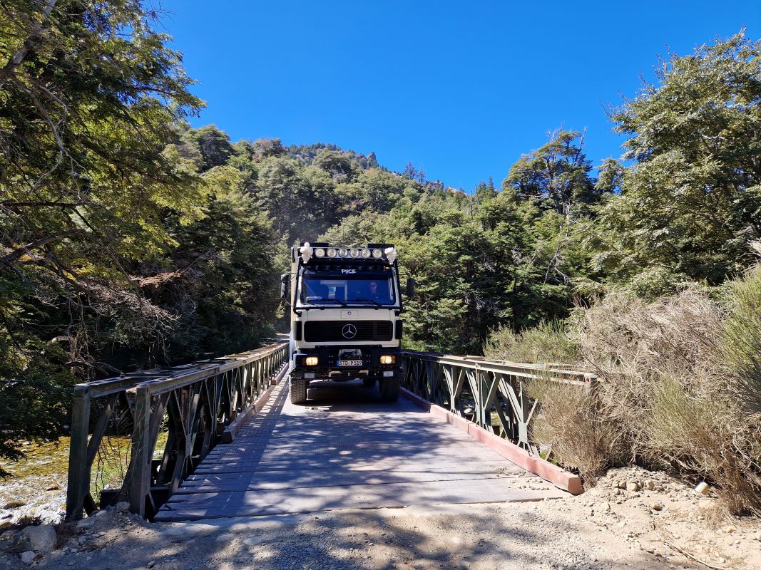 Um zurück auf die Ruta de los Siete Lagos zu kommen liegen nochmals 27km Ripio “vom Feinsten“ vor uns; wieder eine Traumstraße, da träumste von…und zwar nachts…schweißgebadet! Wäre uns so eine Straße zu Beginn unserer Reise vor knapp vier Monaten unter die Räder gekommen, wir hätten wahrscheinlich abgebrochen und uns für den Rest der Zeit in einem Luxusresort eingenistet. So heißt es jetzt halt: Augen zu und durch. Selbst die Brücken sind für uns zu schwach. Und so heißt es ein ums andere Mal: runter vom Weg und daneben ab durch den Fluss. Man wächst mit seinen Aufgaben. Die Ruta 40 ist nicht mehr weit.