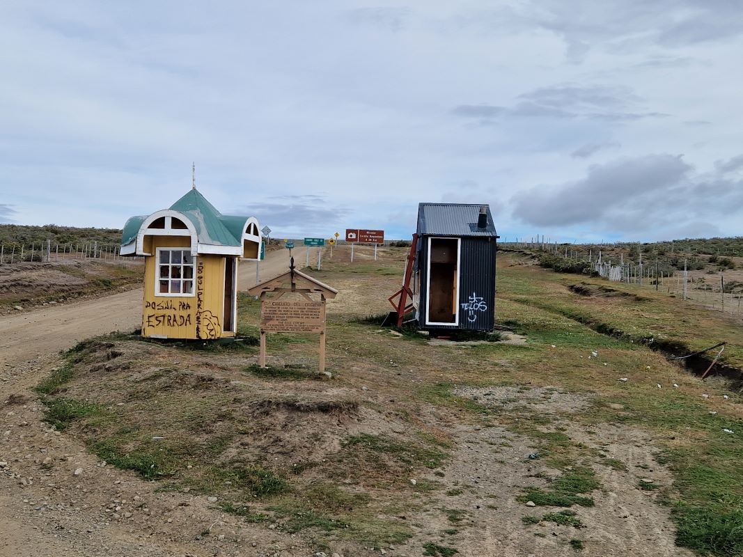 Im chilenischen Teil Feuerlands finden sich in regelmäßigen Abständen kleine Refugios am Straßenrand. Zuerst dachten wir, es handelt sich um Bushaltestellen (doch welche Buslinie fährt hier wohl?). Weit gefehlt. Kleine Tinyhouses mit Koch- und Schlafgelegenheit laden die abends müden Überland-Radfahrtouristen ein, die windigen Nächte zu verbringen.