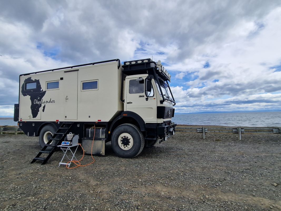 Nach einer tollen und – wie könnte es anders sein – windigen Überfahrt mit Walen und springenden Delphinen rund um die Fähre, kommen wir um 23 Uhr in Punta Arenas an. Wir sind ein bisschen wehmütig, denn mit der erneuten Überquerung der Magellanstraße haben wir Terra del Fuego, das uns so gut gefallen hat, wieder verlassen. Campingplätze gibt es in der Stadt keine und so stellen wir uns zusammen mit Anja und Uli auf einen Parkplatz neben einem Kinderspielplatz der in iOverlander von anderen Campern als geeignete Übernachtungsstelle beschrieben wurde. Wir sind schon im Schlafanzug, als wir Besuch von zwei Municipal-Wärtern bekommen – die sperren die Tore zum Parkplatz über Nacht zu und wir müssten eigentlich raus. Der Überzeugungskunst von Christian und einer kurzen „Hausführung“ sei Dank, wir dürfen stehen bleiben. Wir werden quasi sicher eingeschlossen und die Herren sorgen sich noch, ob wir auch richtig im Wind stehen, damit uns nichts passiert.