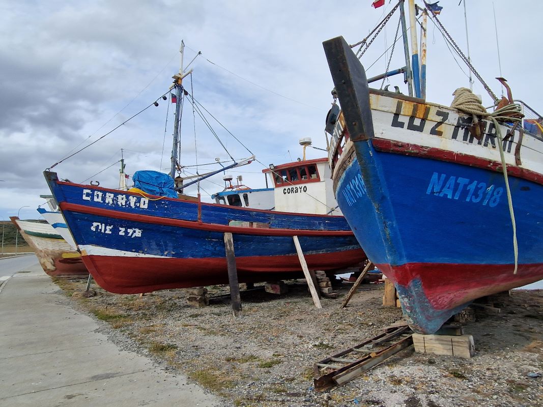 Die Weiterfahrt nach Puerto Natales, dem Tor zum berühmten Torres del Paine Nationalpark, ist eher unspektakulär. Viel mehr als Hotels für Tagestouristen, viele Restaurants und fast noch mehr Outdoorausstatter und -veranstalter hat der Ort nicht zu bieten. Es ist sonnig, aber sehr windig und nach einem Besuch in der Touristinfo übernachten wir direkt am Wasser in der Nähe des Fischereihafens.