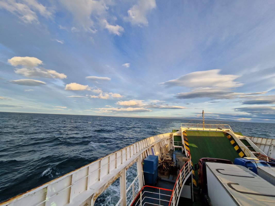 Durch ein Meer aus blühenden Lupinen erreichen wir Porvenir, ein kleines Hafenstädtchen an der Westseite Feuerlands und buchen die Fähre nach Punta Arenas für 20:30 Uhr; vertreiben uns die Zeit bis dahin mit einem ausgiebigen Stadtbummel und warten dann am Leuchtturm mit Blick auf die Magellanstraße, bis es Zeit zum Boarden ist.