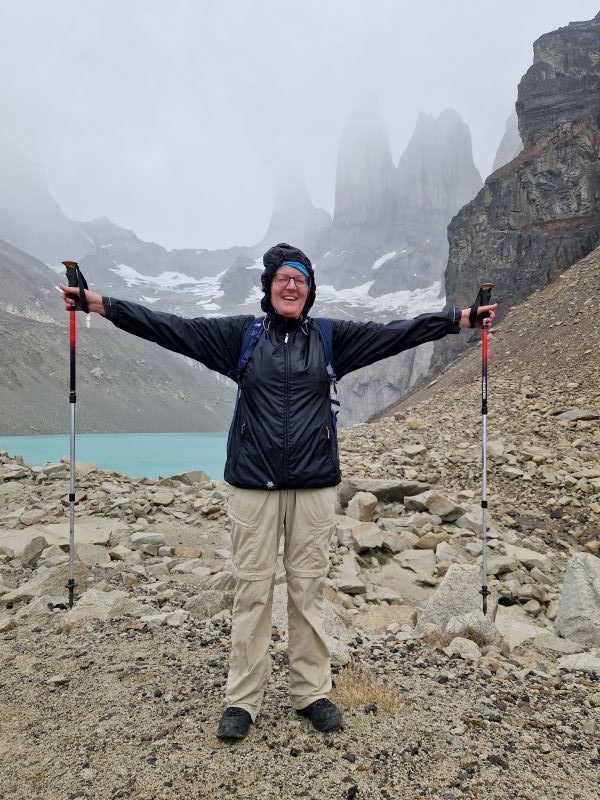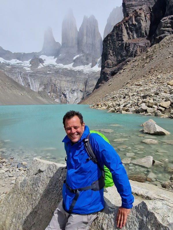 Nach etwa viereinhalb Stunden stehen wir am Fuße der Torres del Paine oberhalb der Baum- und Strauchgrenze am Rand einer wunderschön grünglitzernden Lagune. An den Hängen strömt das Schmelzwasser der in dieser Höhe vom letzten Winter noch verbliebenen Eis- und Schneefelder herab. Und unser erster Condor gleitet scheinbar mühelos im Aufwind. Leichter Niesel fällt aus den Wolken um uns herum; kein Problem, trocknet im Wind sofort wieder. Der Ausblick und das Gefühl „es geschafft zu haben“, entlohnen für die schweren Beine. Nicht umsonst wird dieser Weg auch „Torres del Pain“ genannt; was augenzwinkernd mit „Türme der Schmerzen“ übersetzt werden kann.