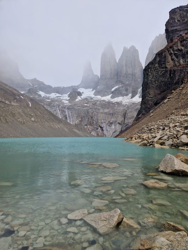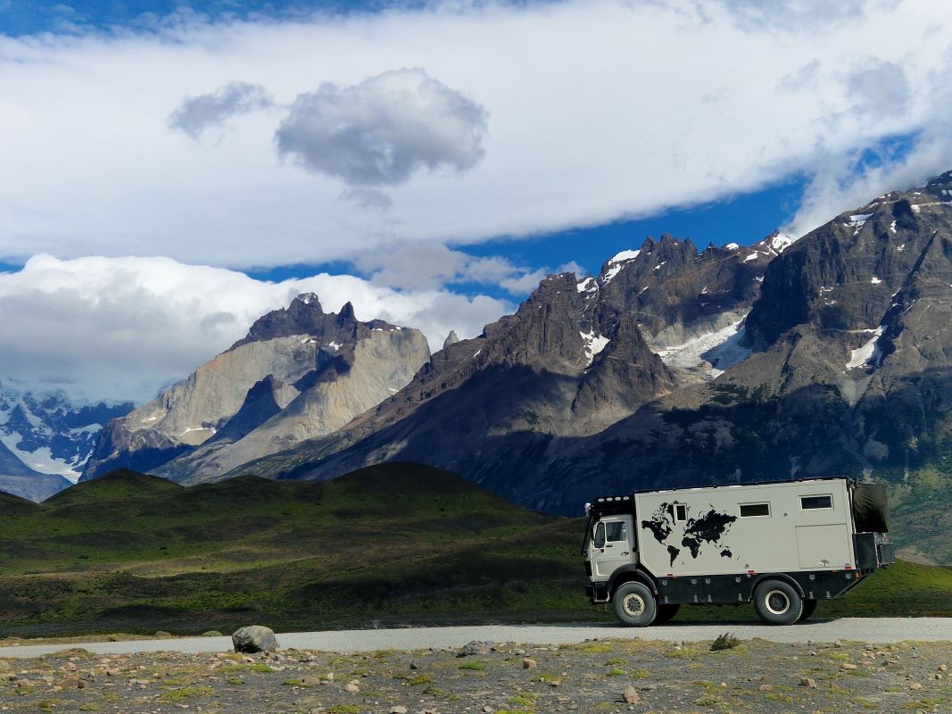 Es sind nochmals 150km Fahrt in den Park, je weiter wir kommen desto besser wird das Wetter und Nachmittags kommt sogar die Sonne raus. Wir stehen am Parkplatz des Wanderweges zum Fuß der Las Torres, mit irrem Blick auf die „Türme“, die dem Nationalpark seinen Namen geben. Fast schon dramatisch stechen die cuernos und die torres (also die Hörner und Türme), des aus Vulkanschichten, Granit und Kalk bestehenden Gebirges in die Höhe.